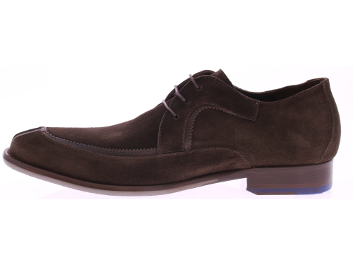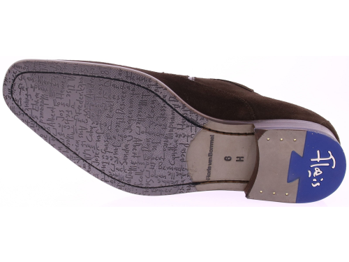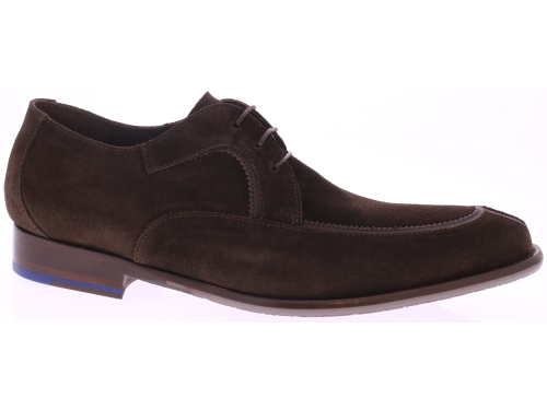 Bruin suède heren veterschoen van Floris van Bommel. Dit tijdloze model in H-leest is uitgevoerd in zacht suède en heeft een subtiele belijning die de schoen een verfijnde, klassieke uitstraling geeft. De rubberen zool zorgt voor licht en soepel loopcomfort, terwijl de leren voering de pasvorm natuurlijk ondersteunt. Het voetbed is niet uitneembaar. Ontdek ook de andere heren veterschoenen van Van Bommel bij Klijsen.