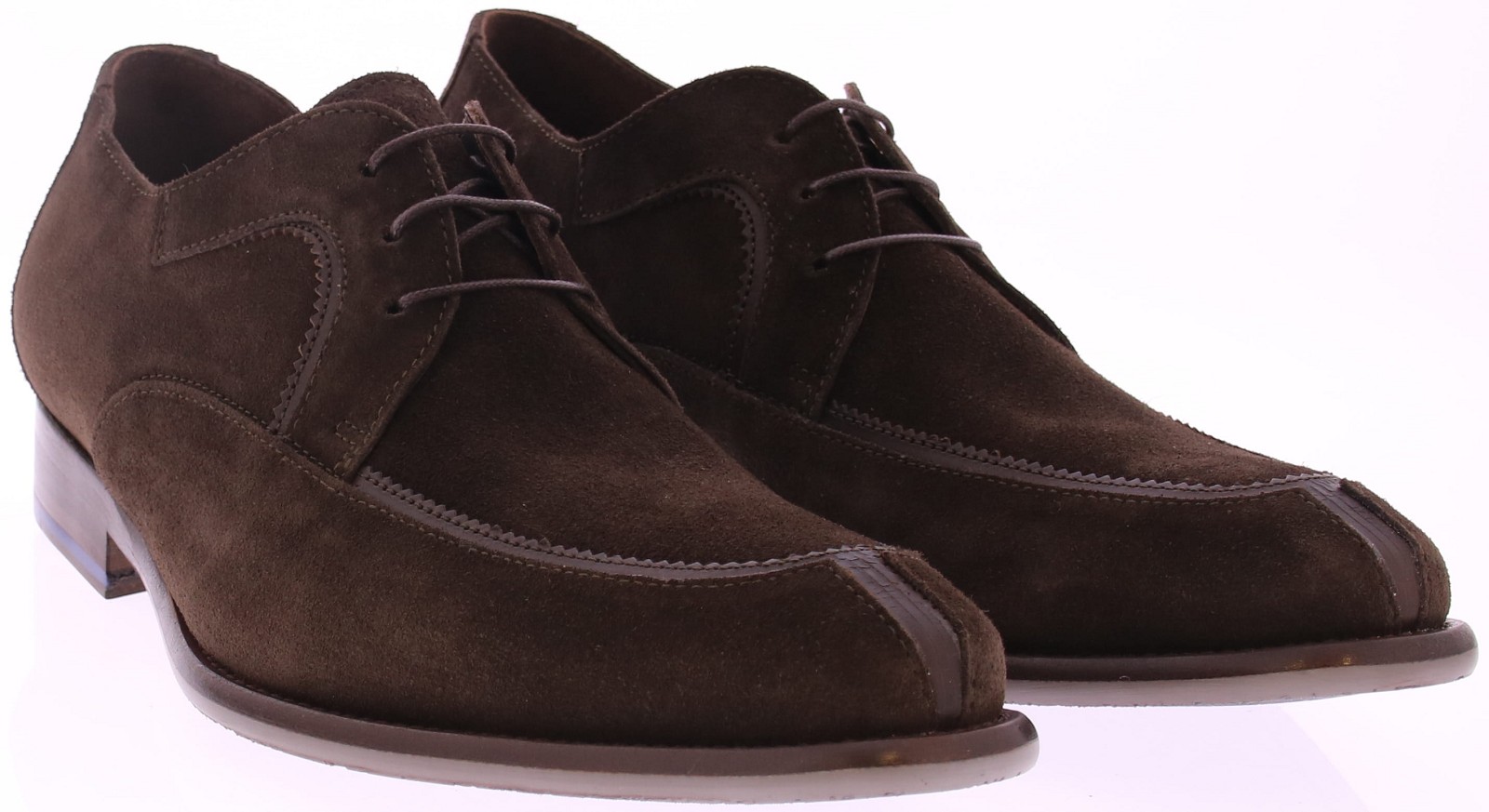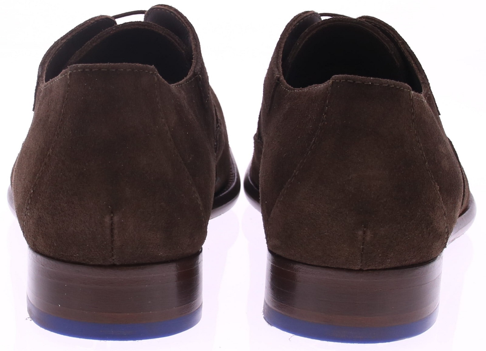 Bruin suède heren veterschoen van Floris van Bommel. Dit tijdloze model in H-leest is uitgevoerd in zacht suède en heeft een subtiele belijning die de schoen een verfijnde, klassieke uitstraling geeft. De rubberen zool zorgt voor licht en soepel loopcomfort, terwijl de leren voering de pasvorm natuurlijk ondersteunt. Het voetbed is niet uitneembaar. Ontdek ook de andere heren veterschoenen van Van Bommel bij Klijsen.