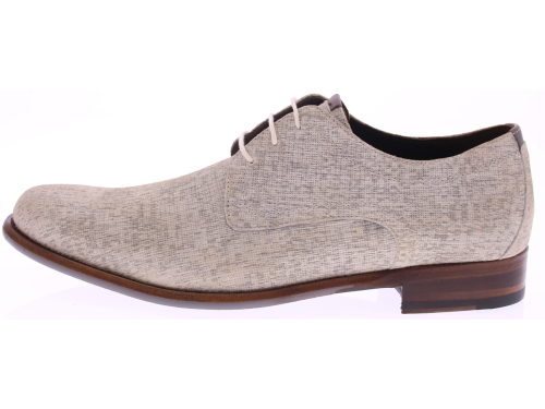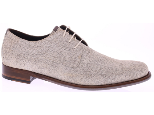 Lichtbeige suède heren veterschoen van Floris van Bommel. Dit verfijnde model in H-leest is uitgevoerd in zacht, gestanst suède met een subtiele textuur die de schoen een moderne en luchtige uitstraling geeft. De rubberen zool biedt soepel draagcomfort, terwijl de elegante belijning zorgt voor een stijlvolle pasvorm die natuurlijk om de voet sluit. Ontdek ook de andere heren veterschoenen van Van Bommel bij Klijsen.