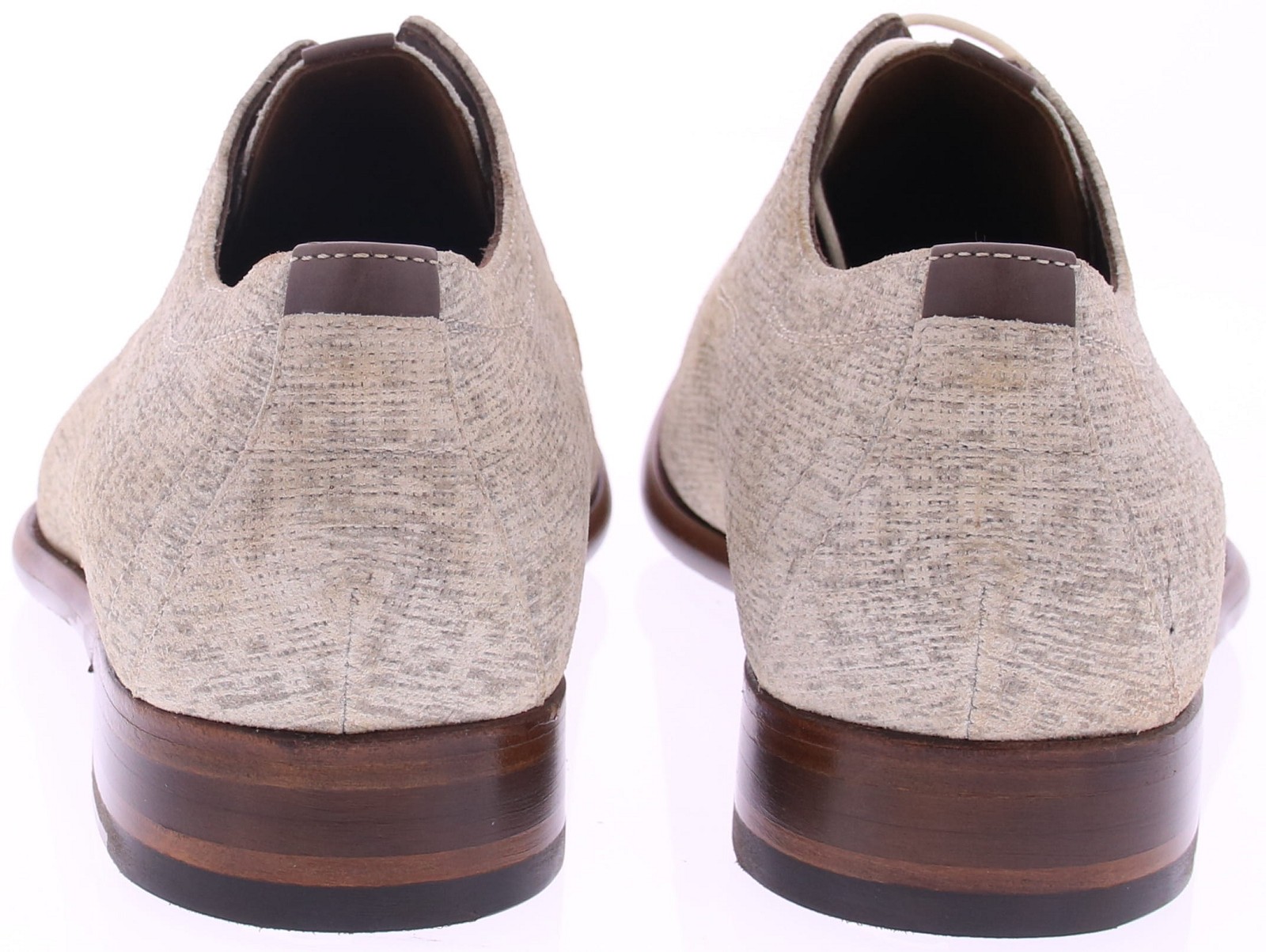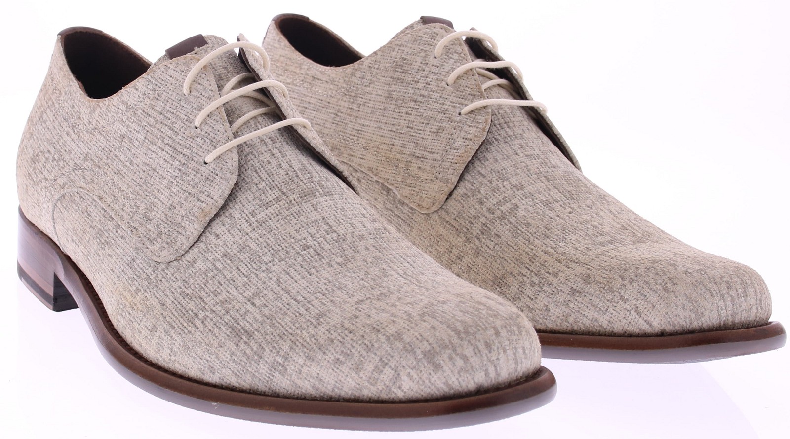 Lichtbeige suède heren veterschoen van Floris van Bommel. Dit verfijnde model in H-leest is uitgevoerd in zacht, gestanst suède met een subtiele textuur die de schoen een moderne en luchtige uitstraling geeft. De rubberen zool biedt soepel draagcomfort, terwijl de elegante belijning zorgt voor een stijlvolle pasvorm die natuurlijk om de voet sluit. Ontdek ook de andere heren veterschoenen van Van Bommel bij Klijsen.