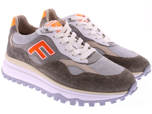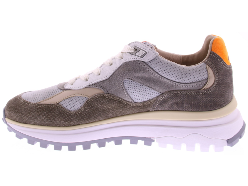 Taupe suède heren sneaker van Floris van Bommel. Dit sportieve model in G½-leest is uitgevoerd in een combinatie van zacht suède, mesh en glad leer, aangevuld met frisse oranje details voor een moderne en energieke uitstraling. De robuuste profielzool zorgt voor grip en licht loopcomfort, terwijl de leren voering de pasvorm natuurlijk laat aansluiten. Het voetbed is uitneembaar en geschikt voor eigen inlegzolen. Ontdek ook de andere heren sneakers van Floris van Bommel bij Klijsen.