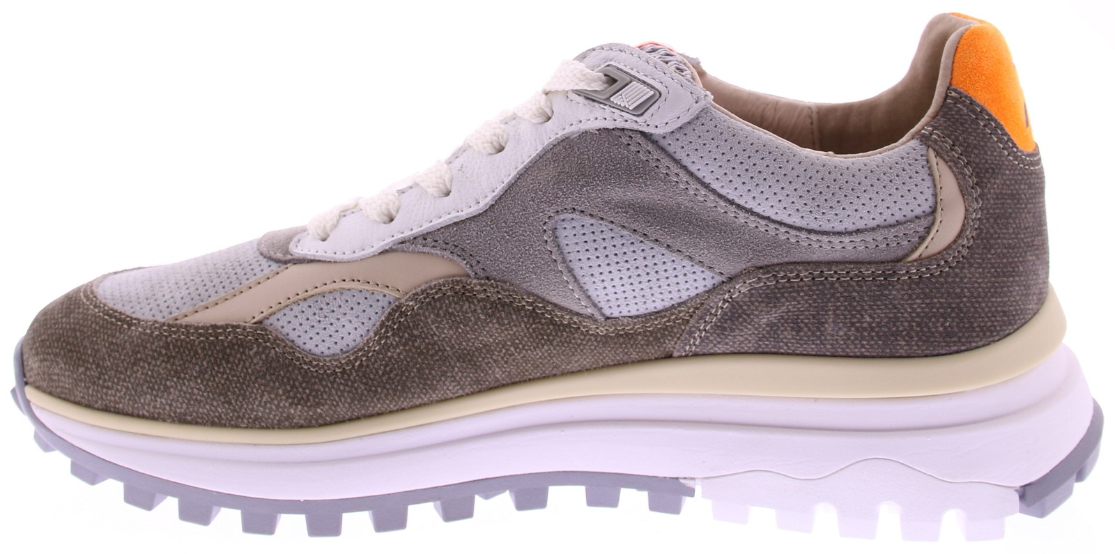Taupe suède heren sneaker van Floris van Bommel. Dit sportieve model in G½-leest is uitgevoerd in een combinatie van zacht suède, mesh en glad leer, aangevuld met frisse oranje details voor een moderne en energieke uitstraling. De robuuste profielzool zorgt voor grip en licht loopcomfort, terwijl de leren voering de pasvorm natuurlijk laat aansluiten. Het voetbed is uitneembaar en geschikt voor eigen inlegzolen. Ontdek ook de andere heren sneakers van Floris van Bommel bij Klijsen.