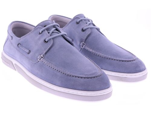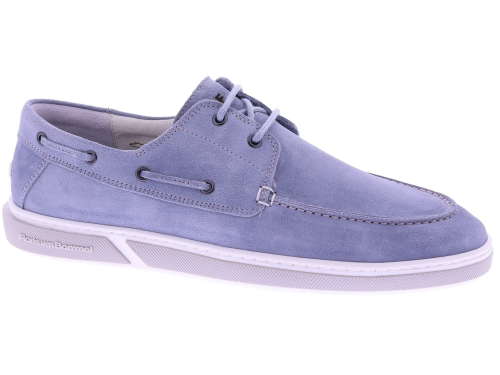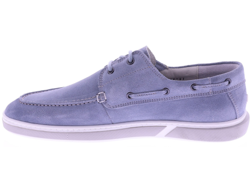Lichtblauw suède heren bootschoen van Floris van Bommel. Dit verfijnde model in G½-leest is uitgevoerd in zacht suède met de karakteristieke bootschoendetails, waaronder het doorgeregen veterkoord en de mocassinbelijning. De lichte cupzool zorgt voor soepel en comfortabel loopgemak, terwijl de leren voering de pasvorm natuurlijk laat aansluiten. Het voetbed is uitneembaar en geschikt voor eigen inlegzolen. Ontdek ook de andere heren bootschoenen van Floris van Bommel bij Klijsen.