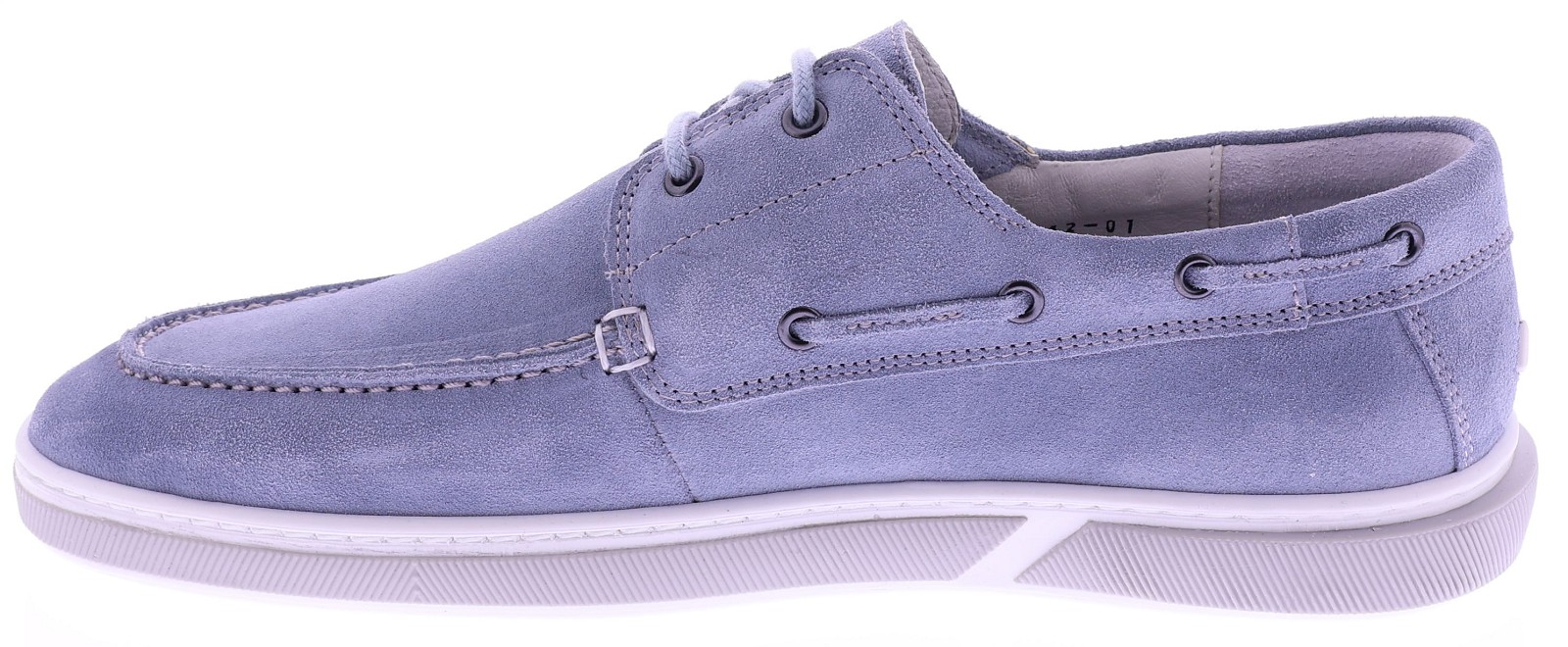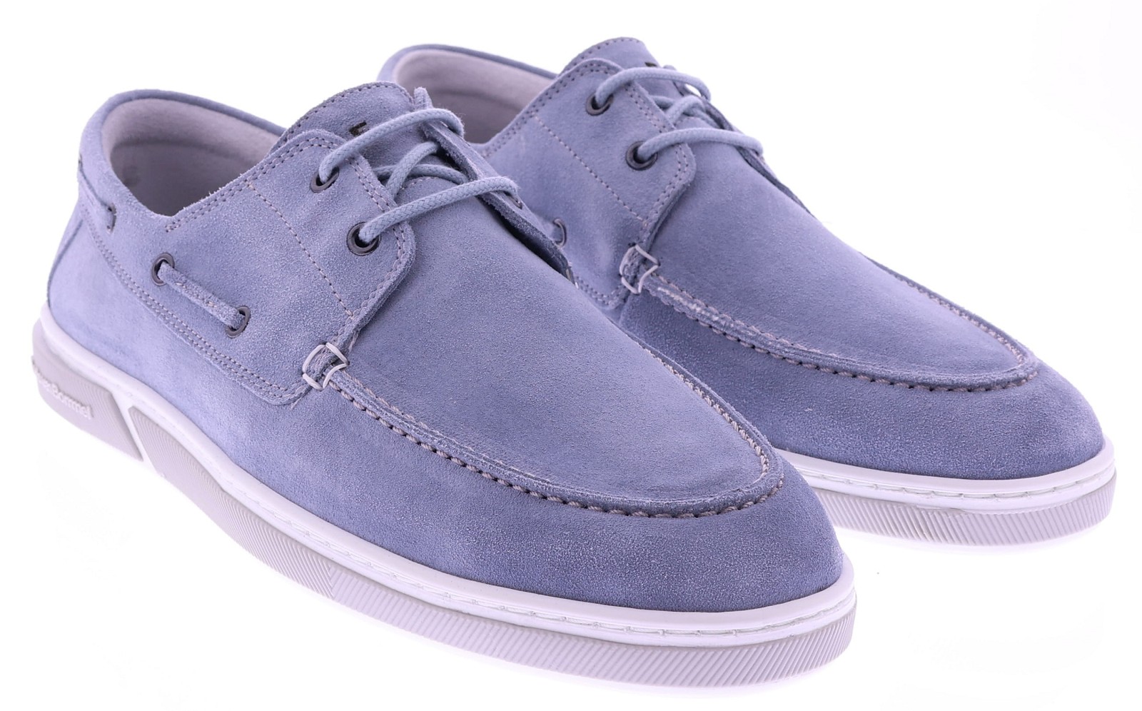 Lichtblauw suède heren bootschoen van Floris van Bommel. Dit verfijnde model in G½-leest is uitgevoerd in zacht suède met de karakteristieke bootschoendetails, waaronder het doorgeregen veterkoord en de mocassinbelijning. De lichte cupzool zorgt voor soepel en comfortabel loopgemak, terwijl de leren voering de pasvorm natuurlijk laat aansluiten. Het voetbed is uitneembaar en geschikt voor eigen inlegzolen. Ontdek ook de andere heren bootschoenen van Floris van Bommel bij Klijsen.