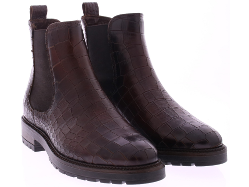 Rood/bruine leren Chelsea boots met croco print voor dames van Gioia. Gemaakt voor stijl én comfort, zijn deze boots uitgevoerd met een stevige, dikke rubberen zool die zorgt voor optimale grip en een moderne, sportieve uitstraling. Dankzij de elastische inzetten aan de zijkanten trek je de boots moeiteloos aan en uit. Deze leren Chelsea boots combineren moeiteloos met een casual jeans of een nette chino en zijn perfect voor elk seizoen.