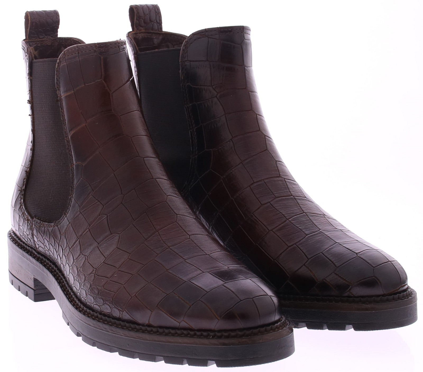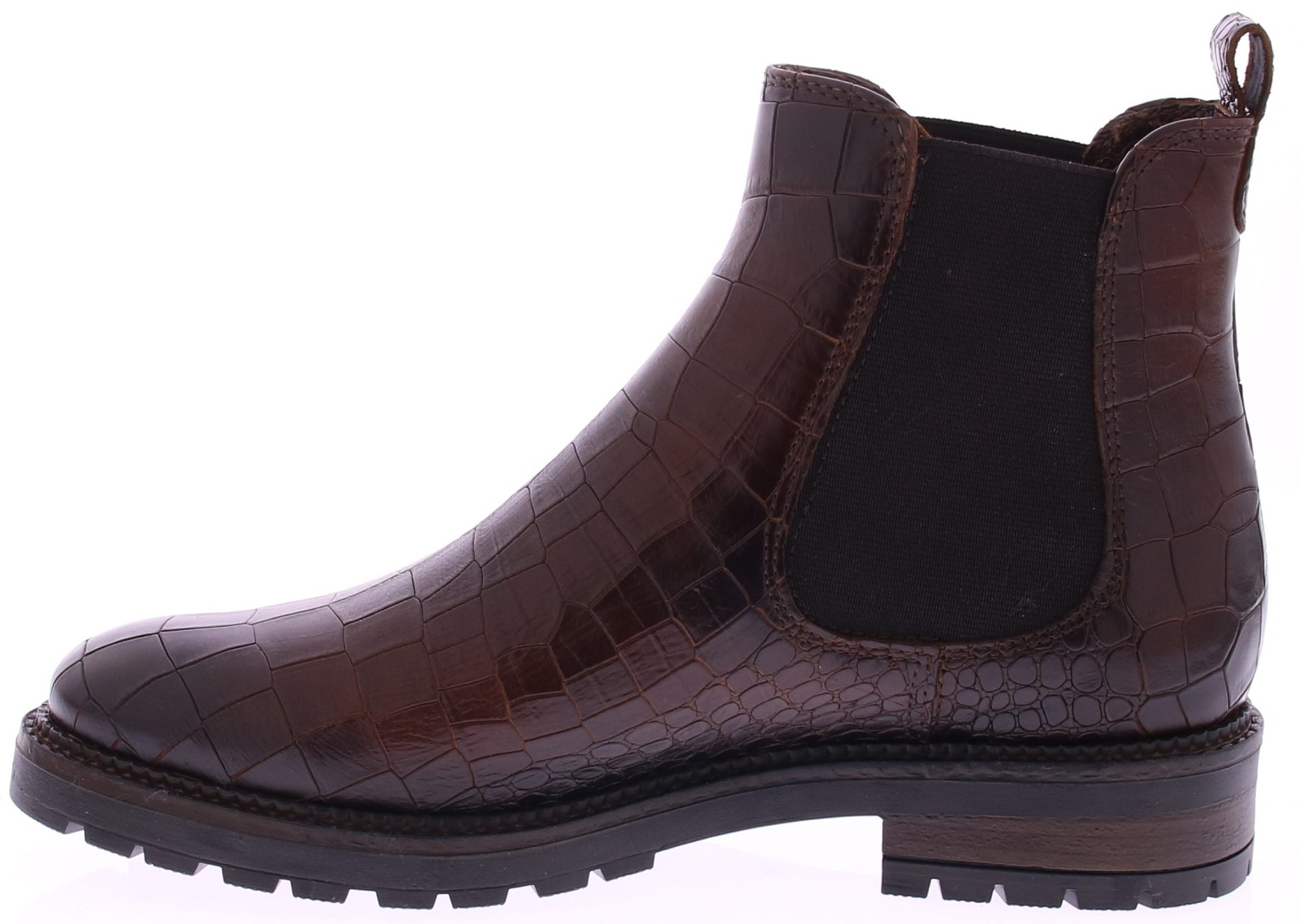 Rood/bruine leren Chelsea boots met croco print voor dames van Gioia. Gemaakt voor stijl én comfort, zijn deze boots uitgevoerd met een stevige, dikke rubberen zool die zorgt voor optimale grip en een moderne, sportieve uitstraling. Dankzij de elastische inzetten aan de zijkanten trek je de boots moeiteloos aan en uit. Deze leren Chelsea boots combineren moeiteloos met een casual jeans of een nette chino en zijn perfect voor elk seizoen.