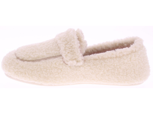 Off-white teddystof pantoffel voor dames van Gioia. deze pantoffel is volledig bekleed met warme teddystof en heeft een zachte stoffen voering die je voeten behaaglijk omhult. Dankzij de flexibele zool stap je er moeiteloos in en uit. Een ideale keuze voor wie houdt van knus, stijlvol én praktisch.