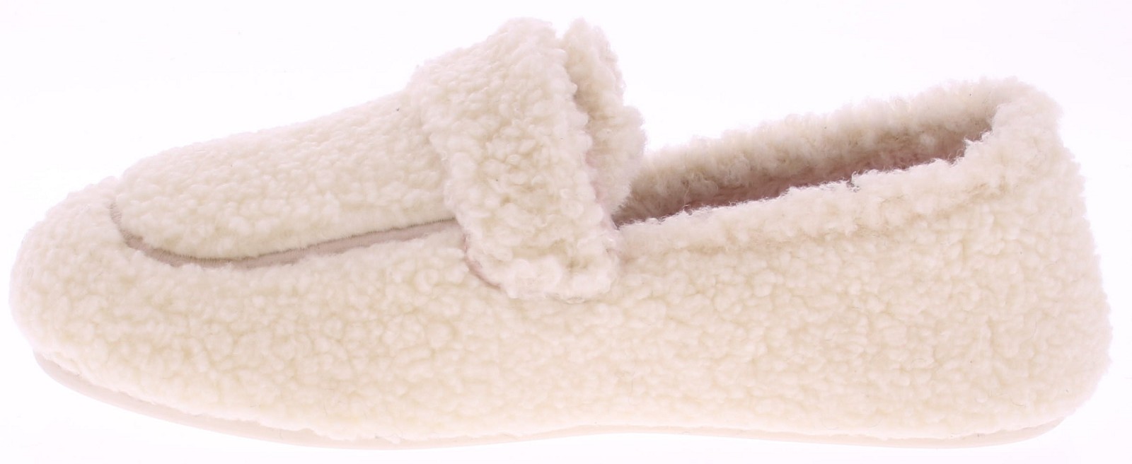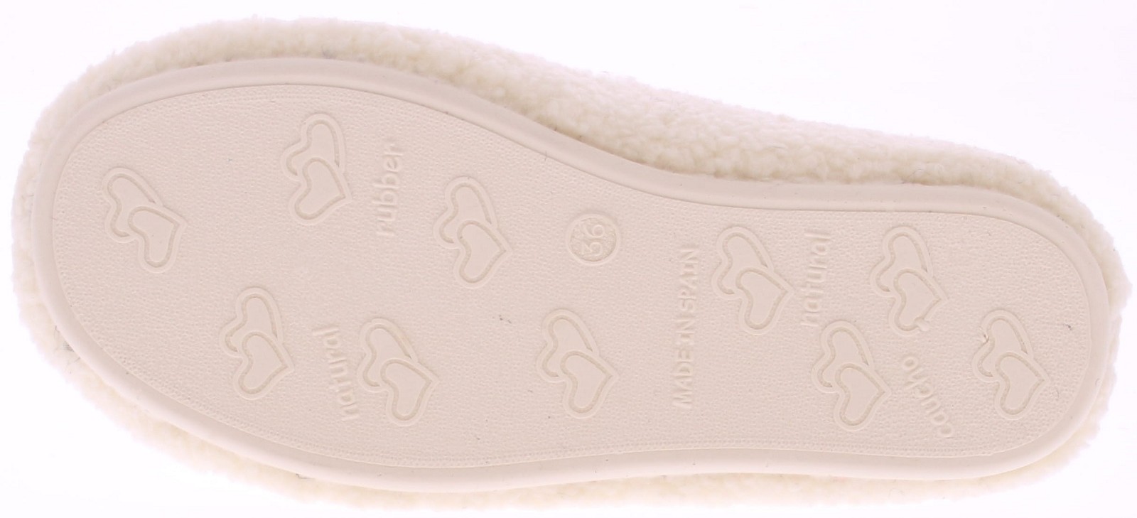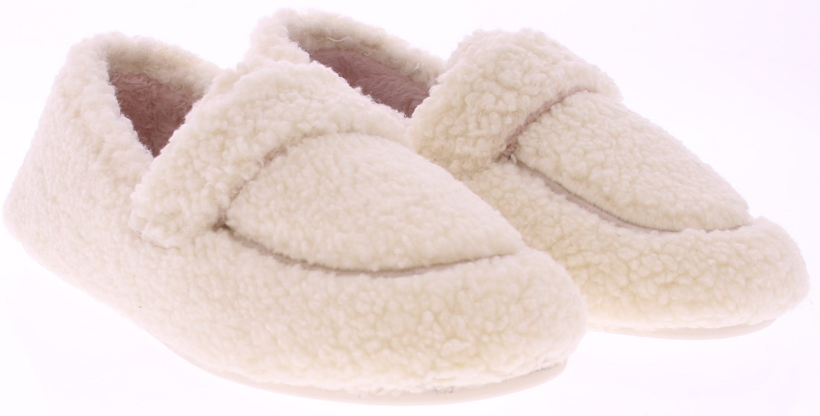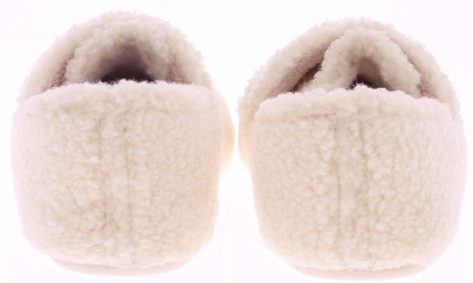 Off-white teddystof pantoffel voor dames van Gioia. deze pantoffel is volledig bekleed met warme teddystof en heeft een zachte stoffen voering die je voeten behaaglijk omhult. Dankzij de flexibele zool stap je er moeiteloos in en uit. Een ideale keuze voor wie houdt van knus, stijlvol én praktisch.