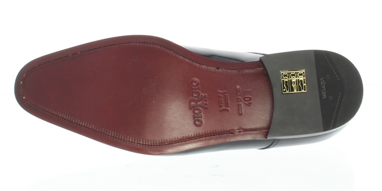 Zwarte lakleren heren veterschoen van Giorgio. Deze klassieke schoen is ideaal om te dragen onder een smoking of een andere formele outfit. De schoen heeft een leren zool en een volledig leren voering voor optimaal draagcomfort en een luxe afwerking.