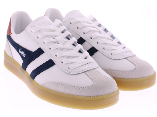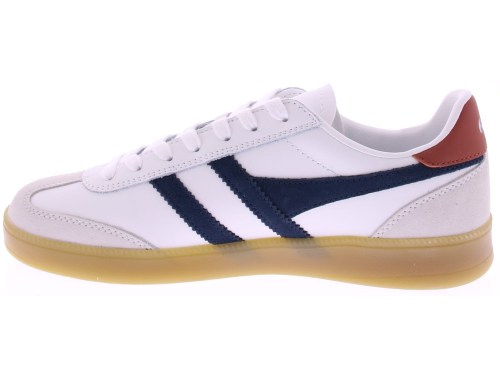 Witte leren heren sneaker van Gola. Deze retro Viper is afgewerkt met donkerblauwe suède details en een subtiel rood hielaccent voor een frisse, sportieve uitstraling. Het soepele leer en de zachte suède overlays zorgen voor comfortabel draaggemak, terwijl de rubberen zool fijne demping en grip biedt. Een veelzijdige sneaker voor heren die tijdloze stijl en kwaliteit waarderen. Ontdek ook de andere heren sneakers van Gola bij Klijsen.
