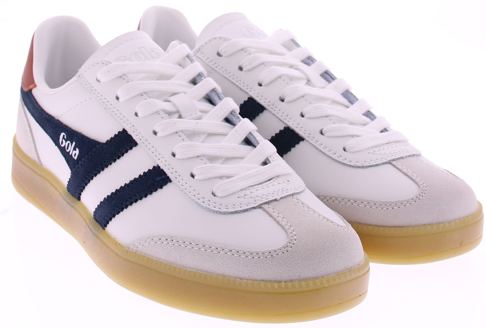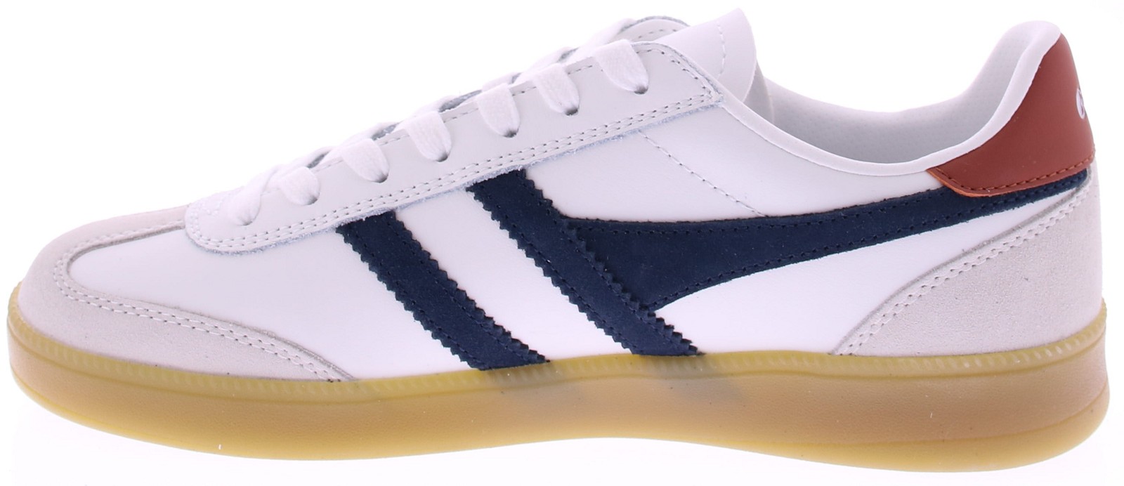 Witte leren heren sneaker van Gola. Deze retro Viper is afgewerkt met donkerblauwe suède details en een subtiel rood hielaccent voor een frisse, sportieve uitstraling. Het soepele leer en de zachte suède overlays zorgen voor comfortabel draaggemak, terwijl de rubberen zool fijne demping en grip biedt. Een veelzijdige sneaker voor heren die tijdloze stijl en kwaliteit waarderen. Ontdek ook de andere heren sneakers van Gola bij Klijsen.