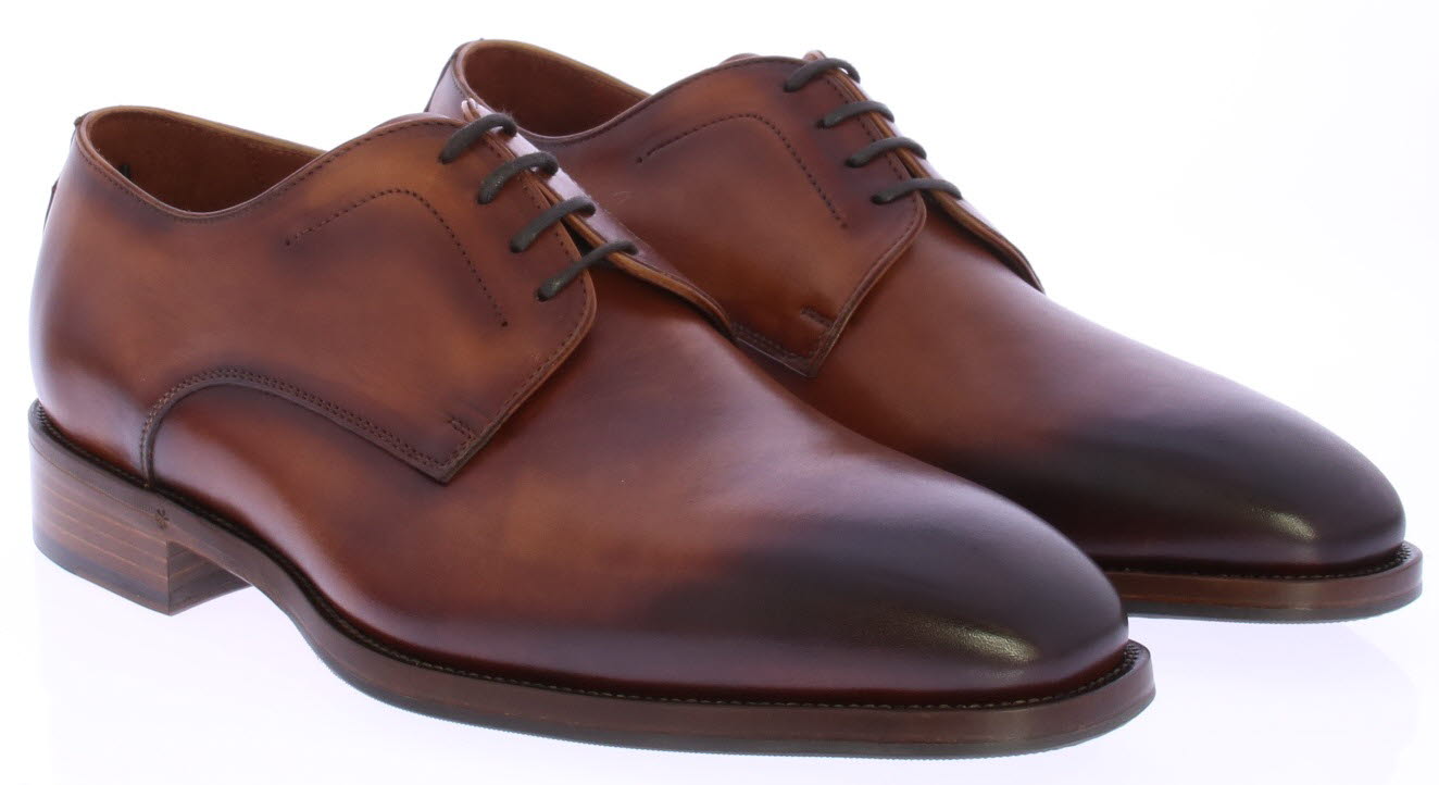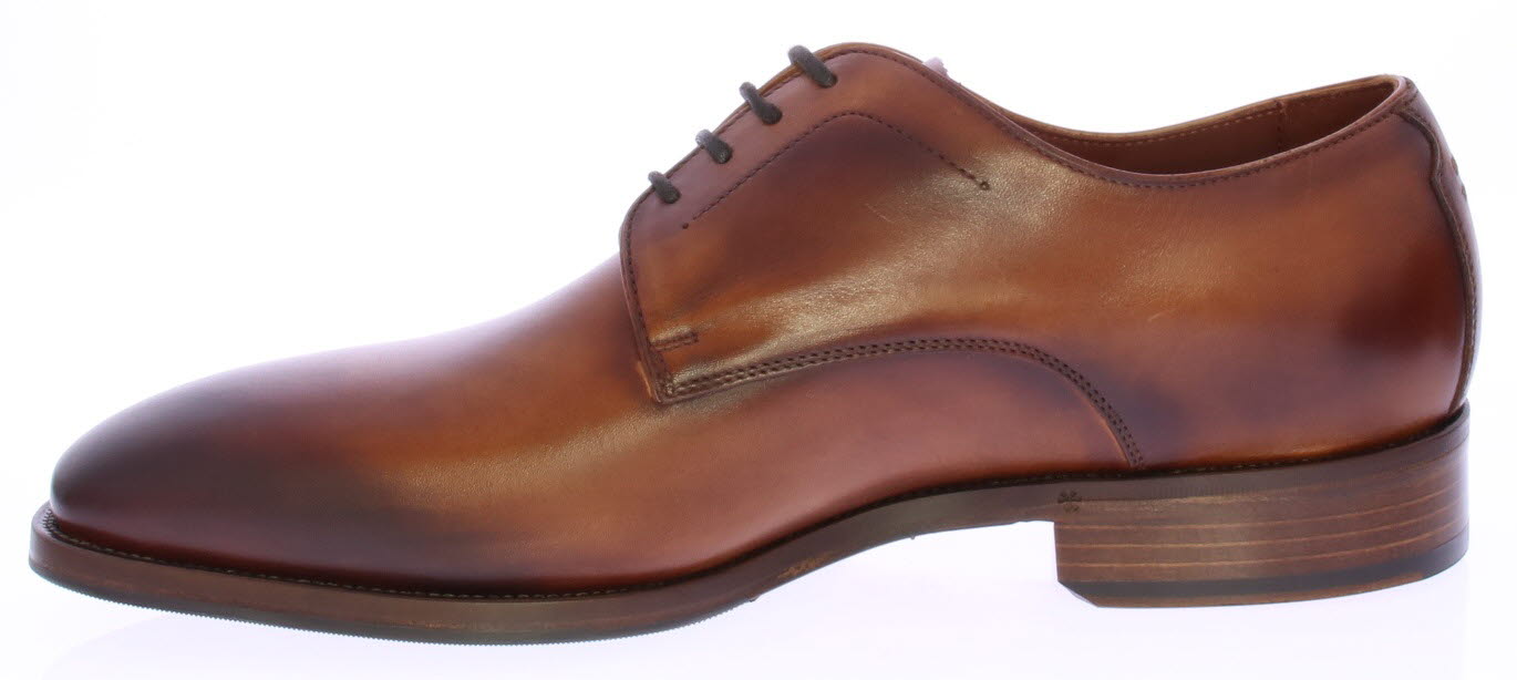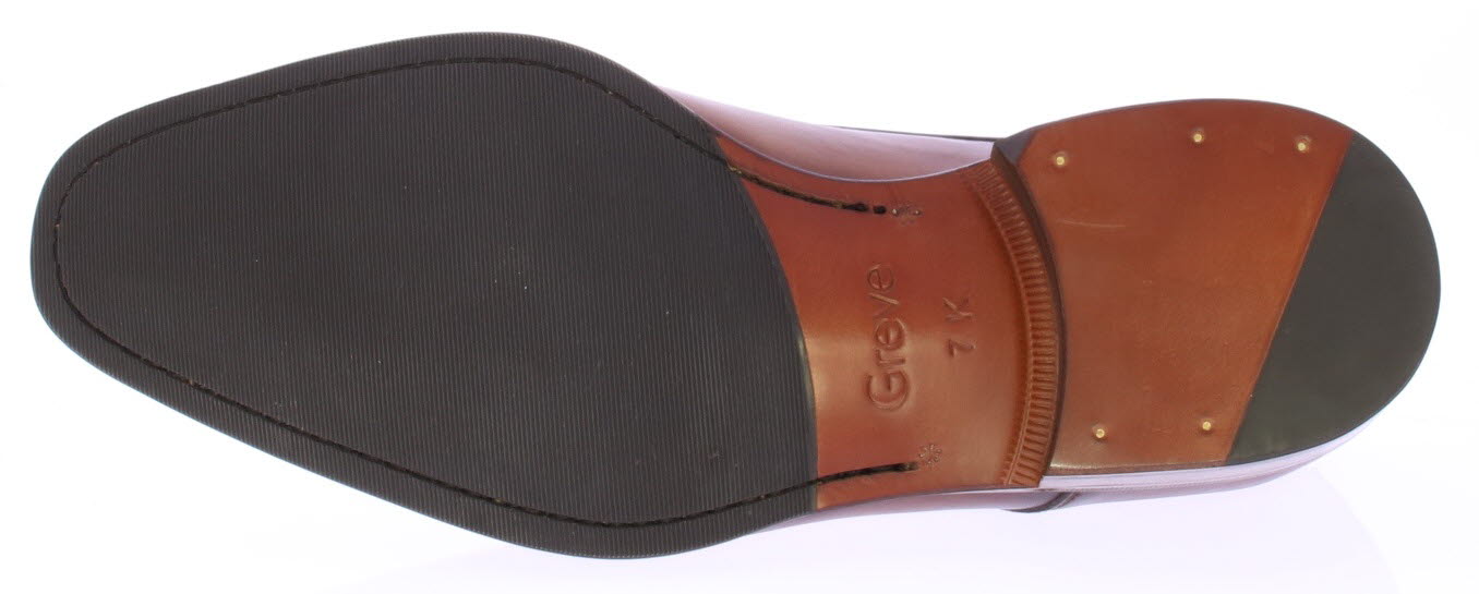 Cognac leren heren veterschoen van Greve. De schoen is gemaakt op de K-leest. hierdoor zeer geschikt voor de brede voet. Ook heeft de schoen een inleg zool waardoor hij kan worden gereduceerd in breedte naar H leest. De voering is van leer en de zool van leer met rubber slijtvlak.
