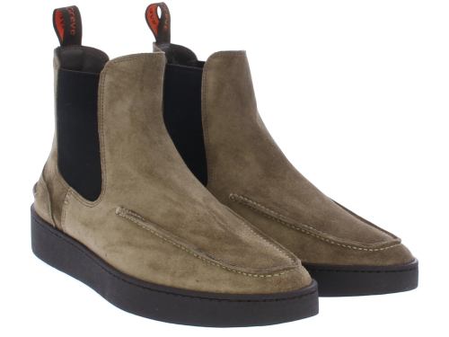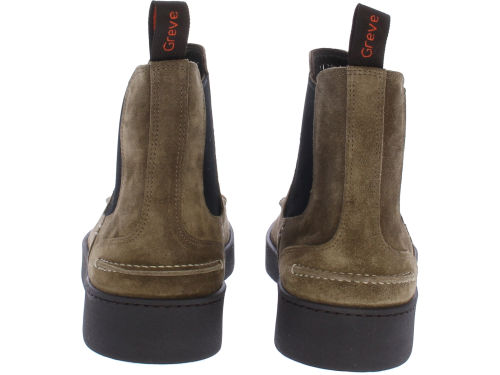 Taupe-kleurige suede heren Chelseaboot van Greve. Deze schoen is uitgevoerd met een spiegel stiknaad over de neus en komt in super soft suede. De schoen heeft een donkere sportieve rubberen zool. De voering is van leer en de binnenzool is uitneembaar.