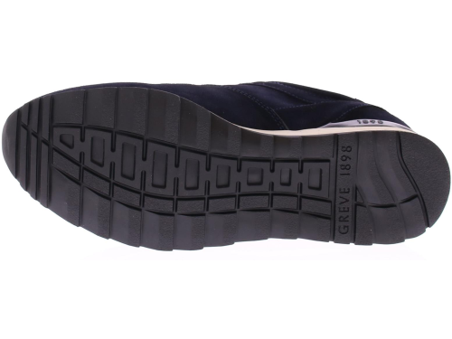Donker blauw suede heren sneaker van Greve. De sneaker is uitgevoerd in een brede H-leest. De sneaker komt op een sportieve off-white rubberen zool. De binnenzool is uitneembaar.