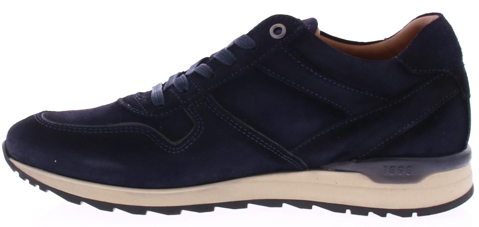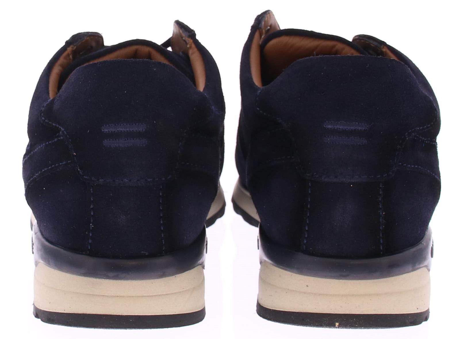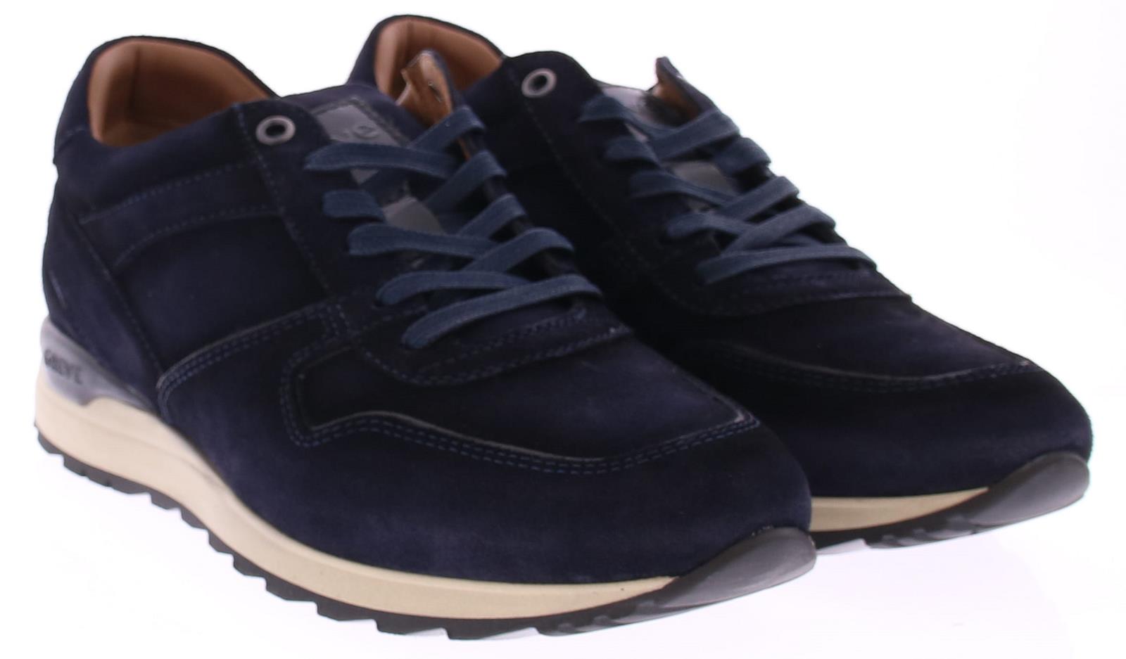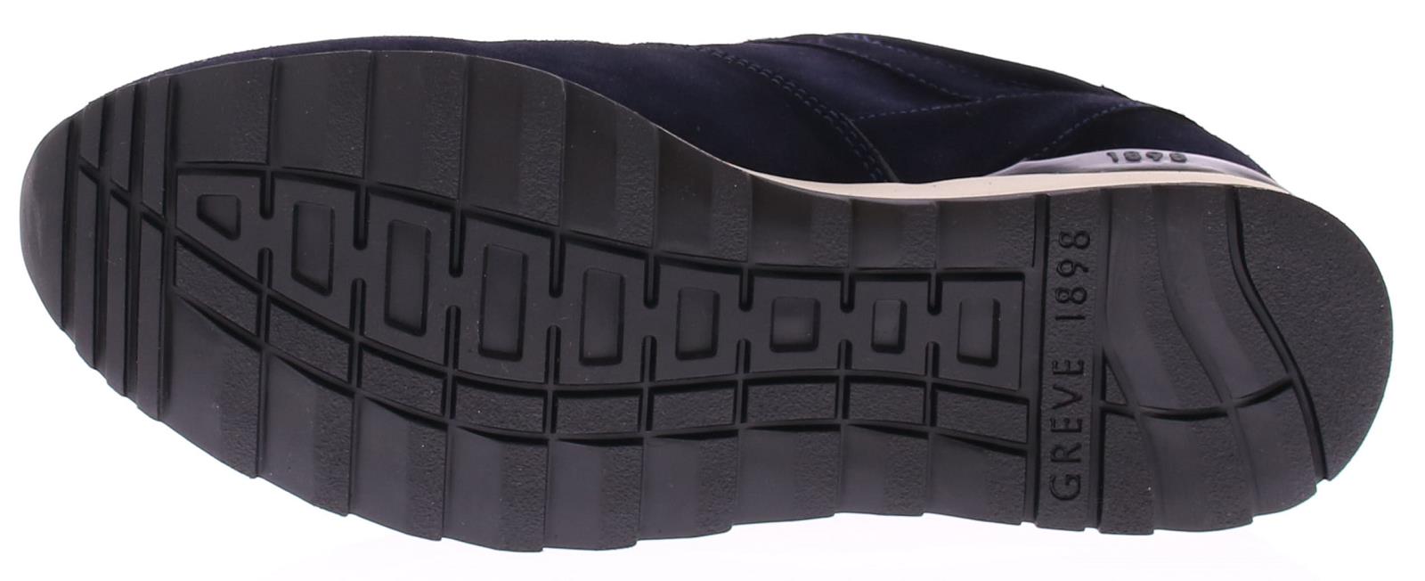 Donker blauw suede heren sneaker van Greve. De sneaker is uitgevoerd in een brede H-leest. De sneaker komt op een sportieve off-white rubberen zool. De binnenzool is uitneembaar.