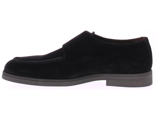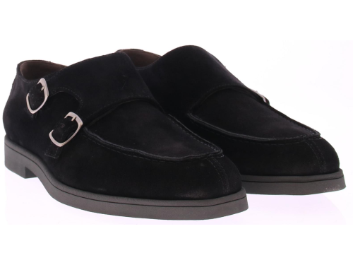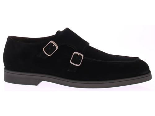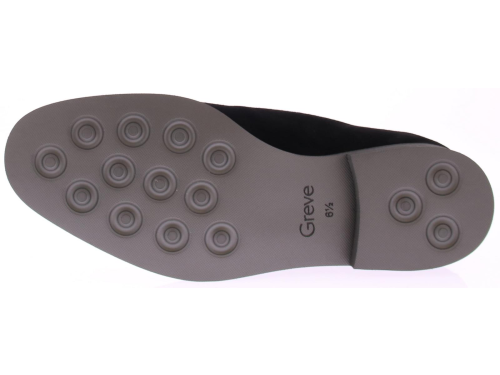 Heren dubbel gespschoen van Greve op sportieve rubber zool uitgevoerd in zwart suede. De zool is grijs lichtgewicht rubber en de voering van leer.