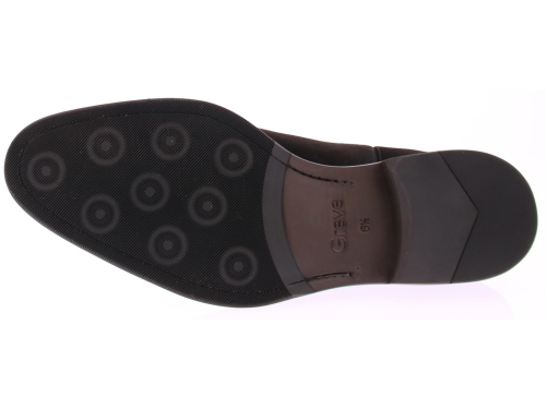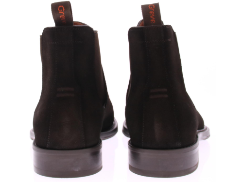 Heren Chelsea van Greve op een wat elegantere leest en uitgevoerd in donkerbruin suede. De schoen heeft een leren zool met rubber op het slijtvlak.