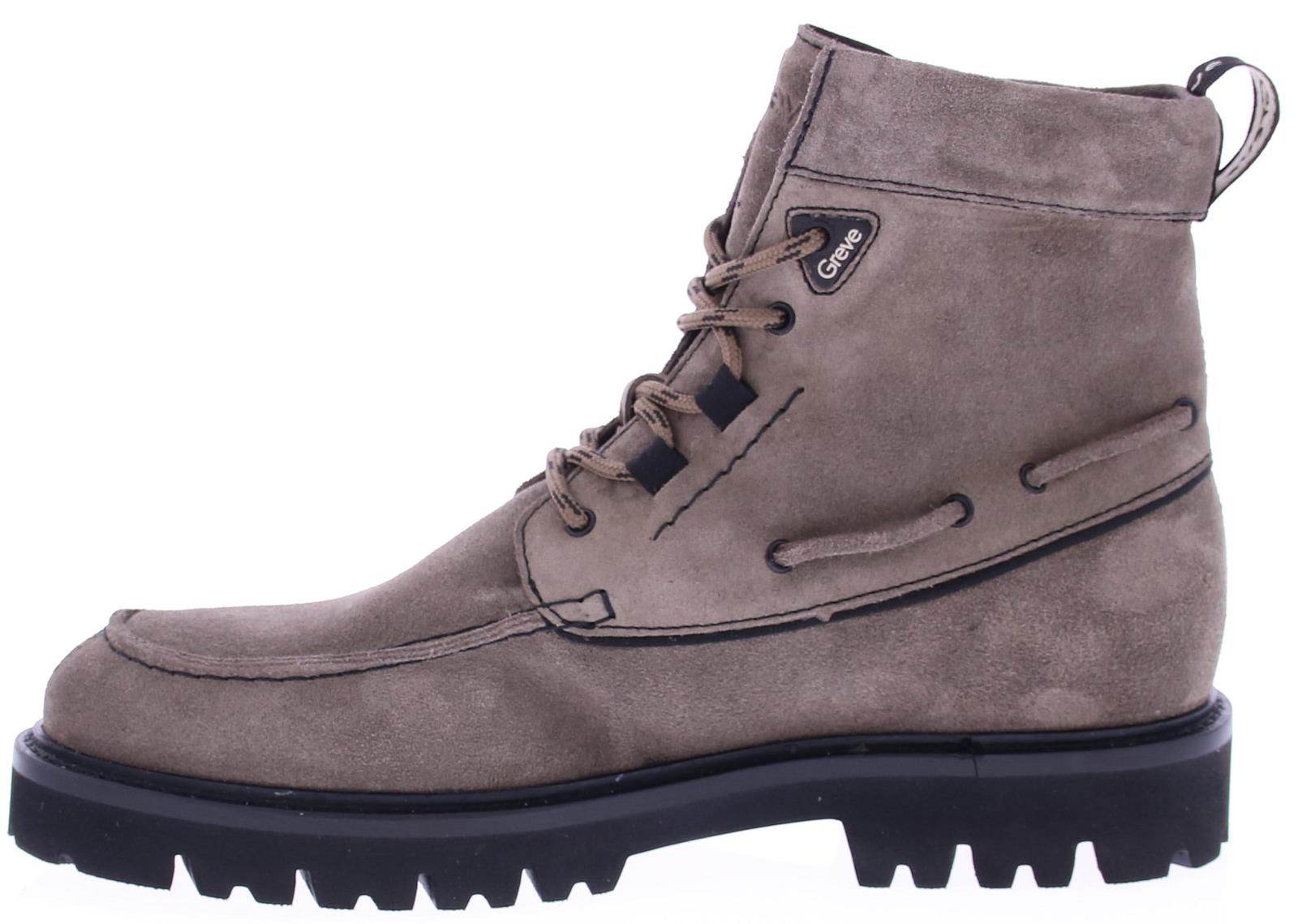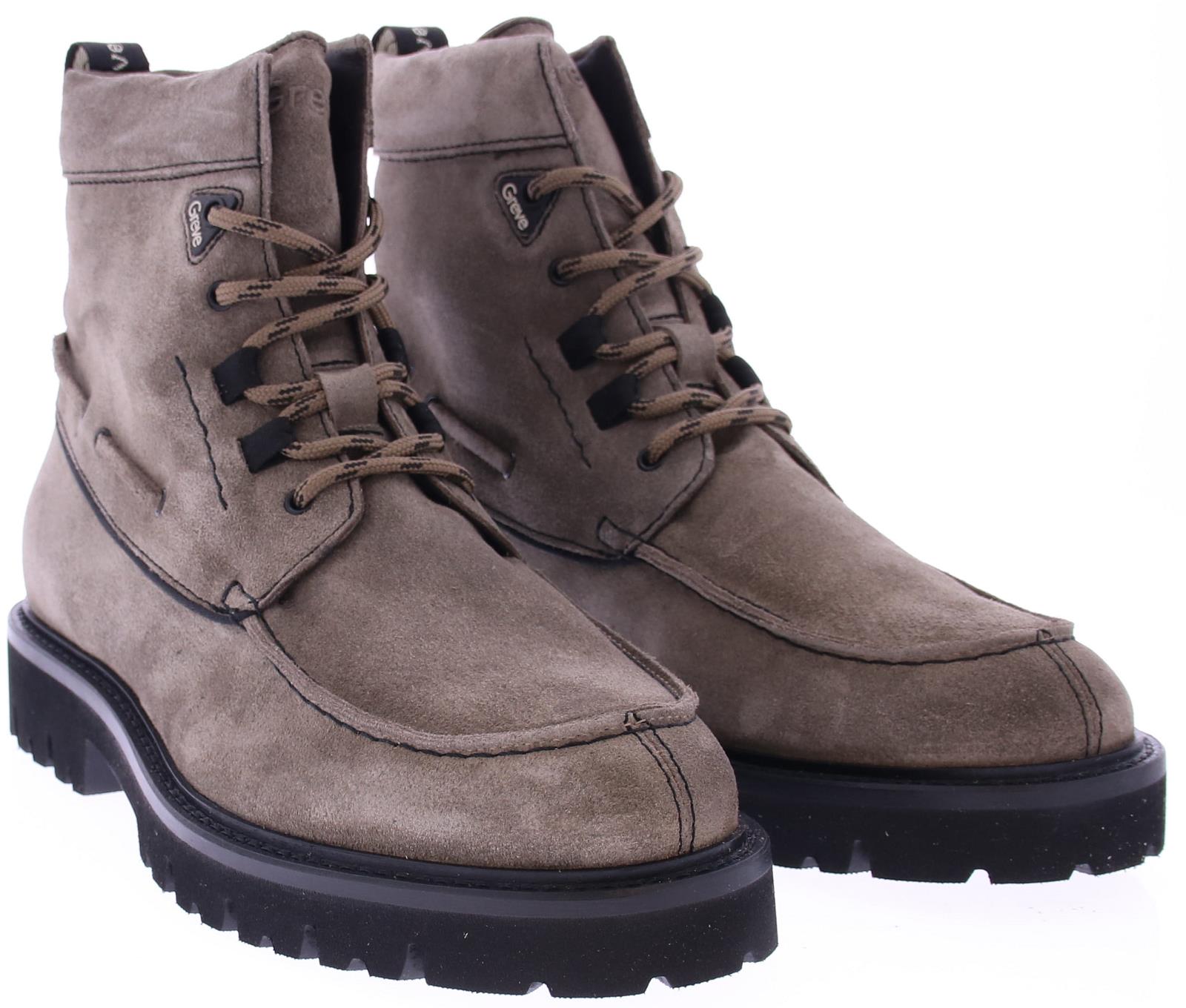 Taupe suède heren veterlaars van Greve. De laarzen zijn gemaakt van hoogwaardig taupe suède, wat zorgt voor een luxe uitstraling en een zijdezachte afwerking. De subtiele taupe kleur biedt veelzijdigheid, waardoor de laarzen gemakkelijk te combineren zijn met zowel casual als formele outfits.