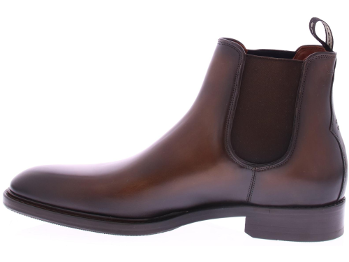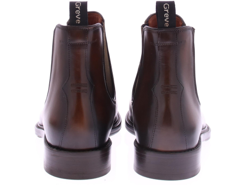 Roodbruine leren heren Chelsea Boots van Greve. Deze laars is gemaakt van topkwaliteit leer en is afgewerkt met bruine elastieken inzetten. Deze schoen komt op een bredere H-leest.