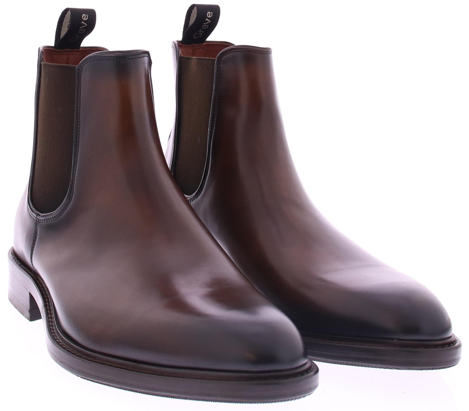 Roodbruine leren heren Chelsea Boots van Greve. Deze laars is gemaakt van topkwaliteit leer en is afgewerkt met bruine elastieken inzetten. Deze schoen komt op een bredere H-leest.