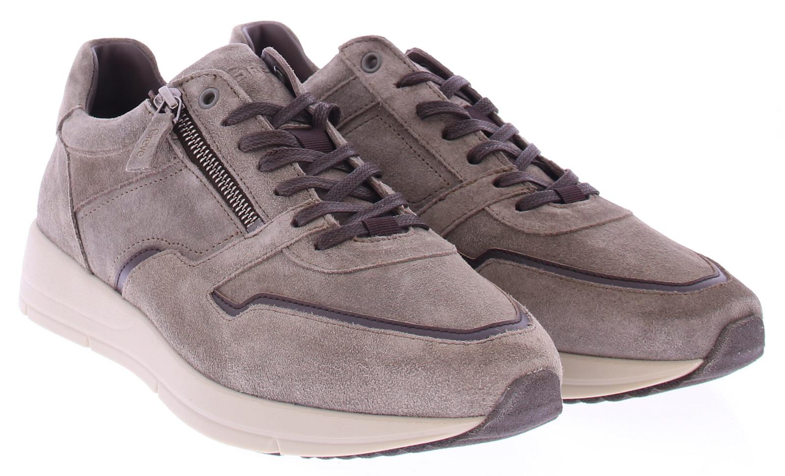 Taupe suède heren sneaker van Greve. Gemaakt van hoogwaardig taupe suède met diverse stiksels en panelen, zijn deze sneakers perfect voor elke gelegenheid. Dit model komt in een bredere K-leest.