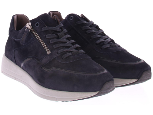 Donkerblauwe suède heren sneaker van Greve. Gemaakt van hoogwaardig blauw suède met diverse stiksels en panelen, zijn deze sneakers perfect voor elke gelegenheid. Dit model komt in een bredere K-leest.