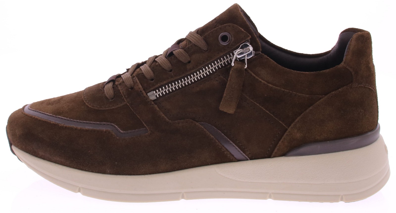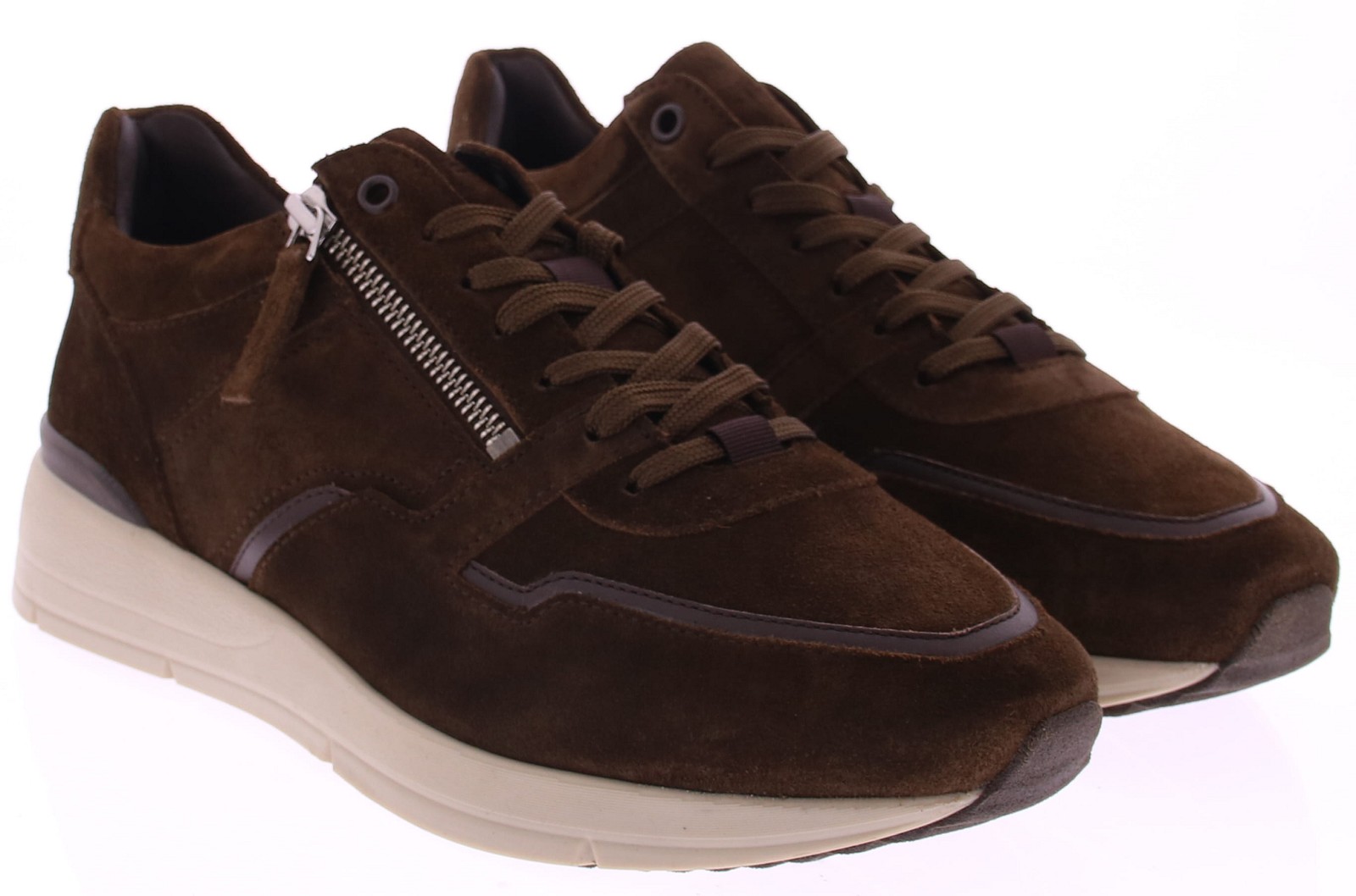 De Greve sneaker 3284.17 combineert luxe materialen met optimaal comfort en gemak. Uitgevoerd in rijk donkerbruin suède, is deze herensneaker voorzien van zowel een vetersluiting als een functionele rits, waardoor je hem eenvoudig aan- en uittrekt. De schoen is vervaardigd op een brede K-leest, wat extra ruimte en comfort biedt voor de bredere voet. Dankzij de volledig leren voering en het uitneembare voetbed is deze sneaker niet alleen stijlvol, maar ook zeer geschikt voor eigen inlegzolen. De moderne, lichtgewicht rubberzool zorgt voor demping en grip bij iedere stap. Een perfecte combinatie van sportieve looks en luxe afwerking – ideaal voor elke dag.