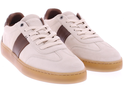 Deze stijlvolle Greve sneaker is de perfecte mix van casual comfort en verfijnde afwerking. Uitgevoerd in hoogwaardig beige suède, met subtiele bruine leren accenten en een opvallende honingkleurige rubberen zool, is deze herensneaker een veelzijdige keuze voor het voorjaar en de zomer. De schoen is voorzien van een volledig leren voering en een uitneembaar voetbed, wat zorgt voor een uitstekende pasvorm en draagcomfort. De combinatie van luxe materialen en sportieve lijnen maakt deze beige Greve sneaker ideaal voor zowel casual als smart casual outfits.