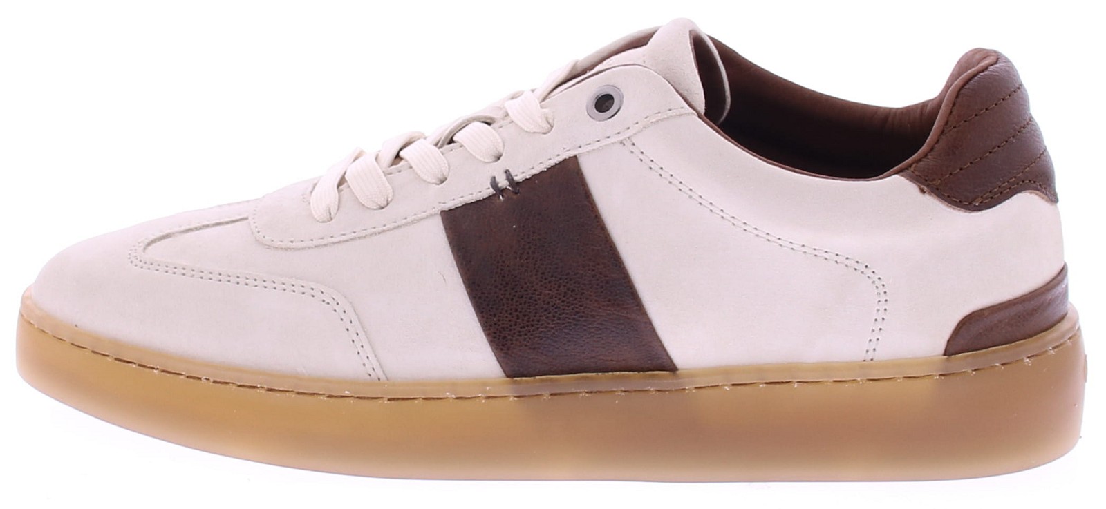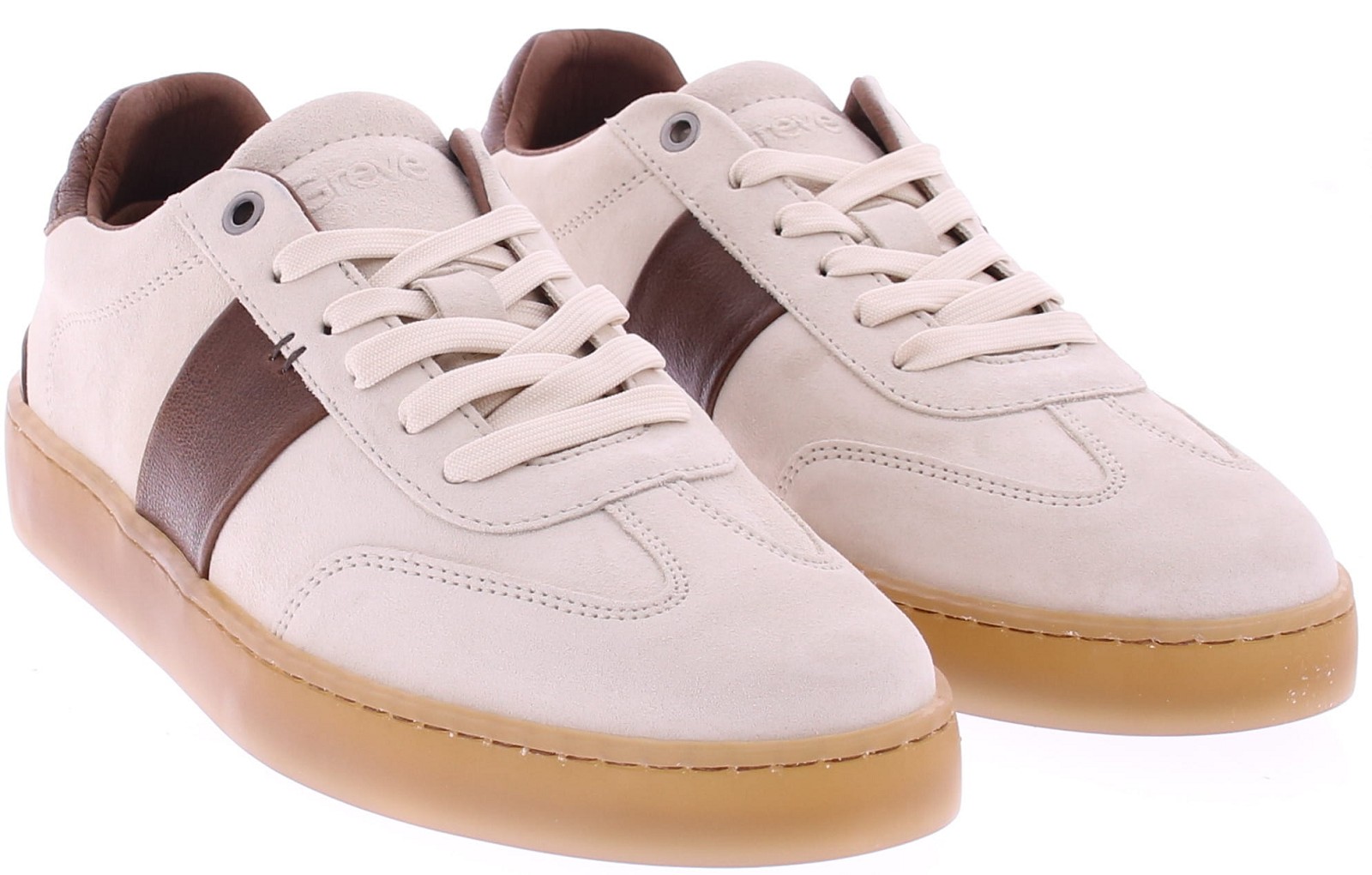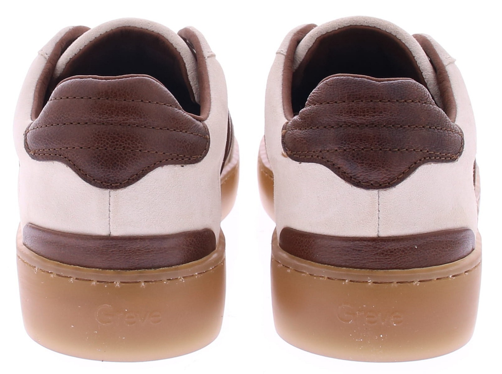 Deze stijlvolle Greve sneaker is de perfecte mix van casual comfort en verfijnde afwerking. Uitgevoerd in hoogwaardig beige suède, met subtiele bruine leren accenten en een opvallende honingkleurige rubberen zool, is deze herensneaker een veelzijdige keuze voor het voorjaar en de zomer. De schoen is voorzien van een volledig leren voering en een uitneembaar voetbed, wat zorgt voor een uitstekende pasvorm en draagcomfort. De combinatie van luxe materialen en sportieve lijnen maakt deze beige Greve sneaker ideaal voor zowel casual als smart casual outfits.
