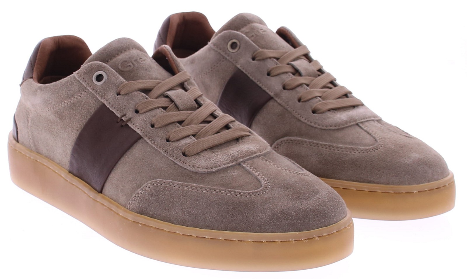 De Greve sneaker 2223.01 is een verfijnde herenschoen die moeiteloos stijl en comfort combineert. Uitgevoerd in taupe suède met bruine leren details en een contrasterende honingkleurige rubberen zool, is deze sneaker een veelzijdige keuze voor de modebewuste man. Deze taupe Greve sneaker is voorzien van een volledig leren voering en een uitneembaar voetbed, waardoor hij niet alleen luxe aanvoelt maar ook geschikt is voor eigen inlegzolen.