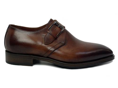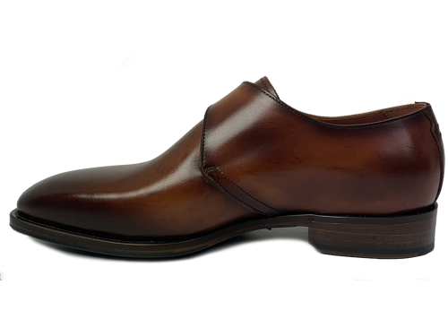 Cognac-kleurige leren heren gespschoen van Greve. Deze schoen is uitgevoerd in een extra brede K-leest. De schoen heeft een leren zool met rubber inzet op het slijtvlak. De schoen is leer gevoerd en heeft een uitneembare binnenzool.