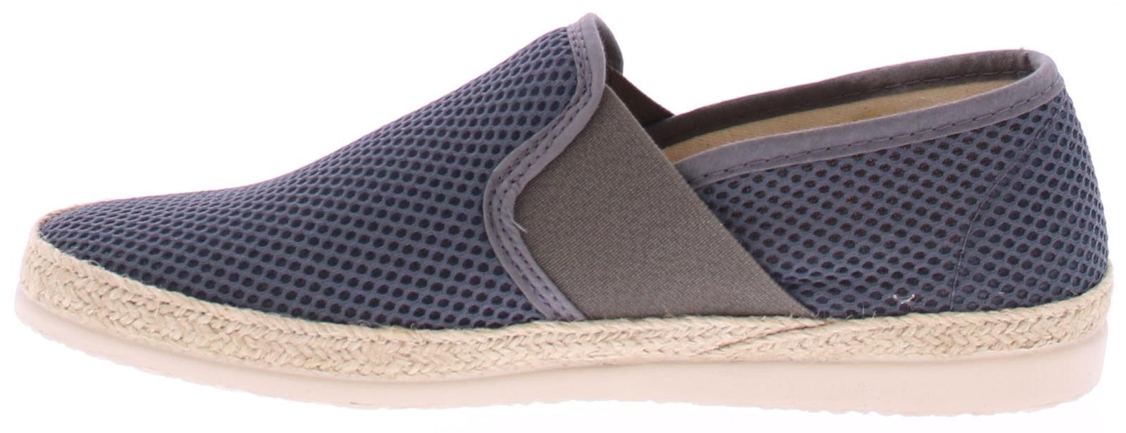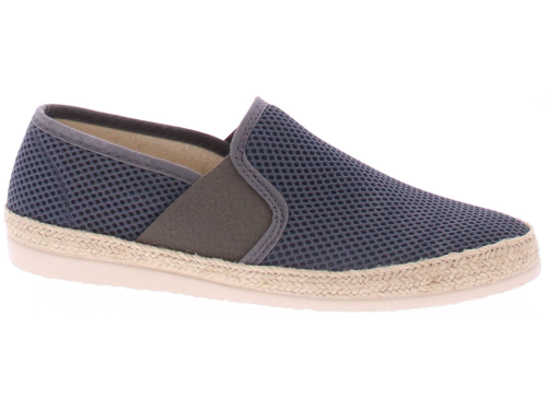 Heren touwzoolinstapper van Cypres in perfolook stof met een sportieve touwrand rond de zool. De zool is van rubber en de voering van stof.