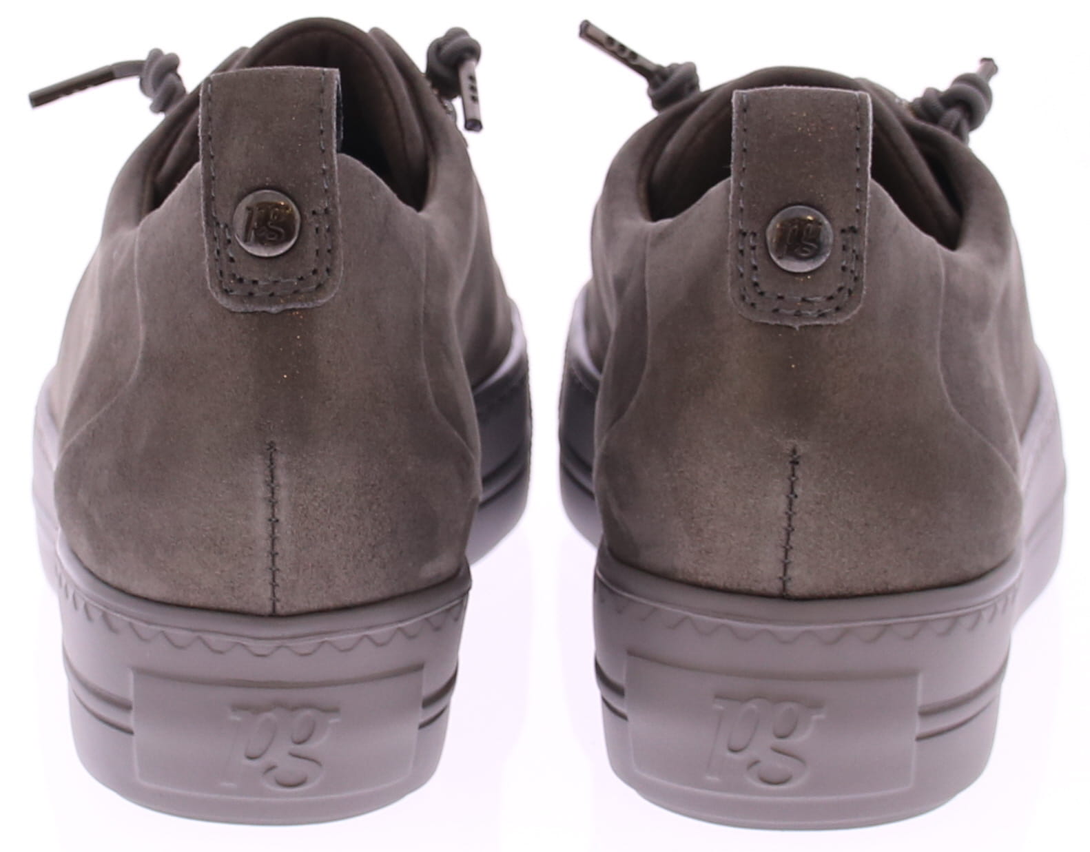 Middengrijs suede dames sneaker van Paul Green. Deze sneaker komt op een lichtgewicht sportieve rubberen zool en heeft een blinde sluiting met een elastische veter. Dankzij de super soft maakwijze biedt dit paar extra comfort. Over het suede zit een heel subtiel poedermetallic laagje.
