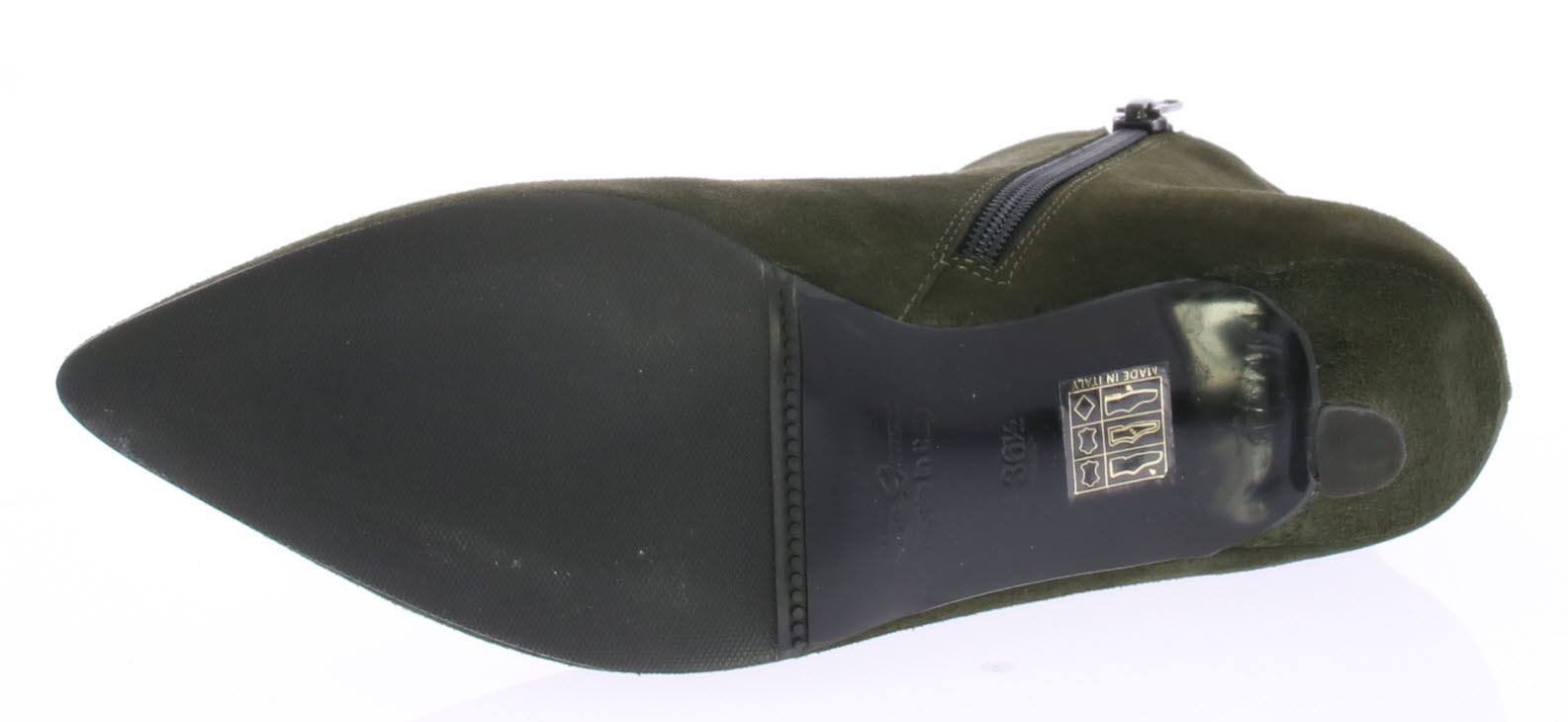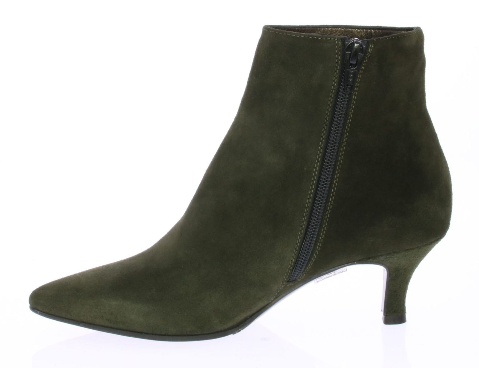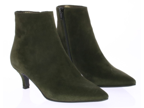 Simpele basis enkellaars van Cristian Daniel, uitgevoerd in groen suede op een 5cm queenie hak.