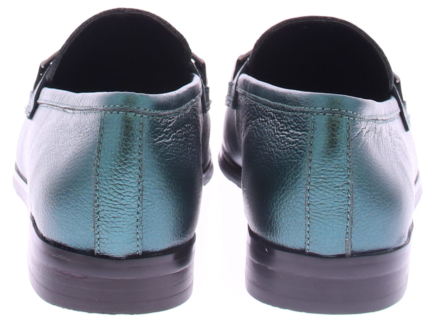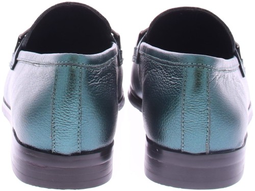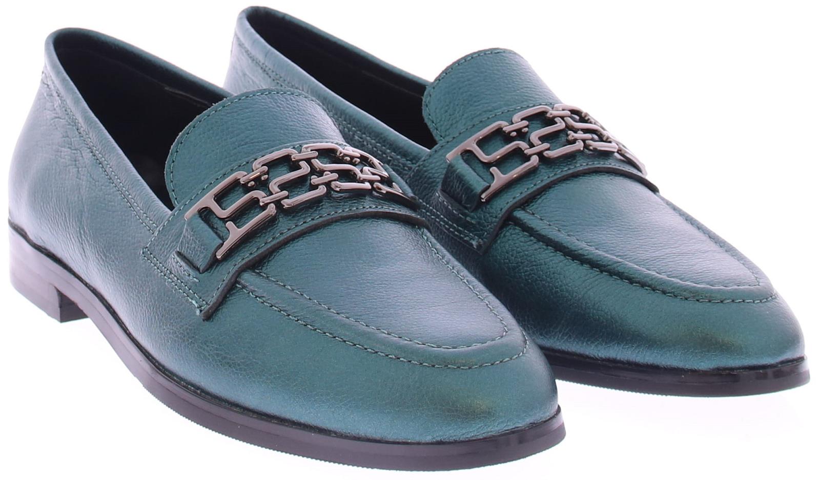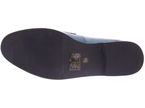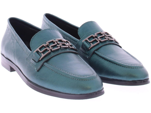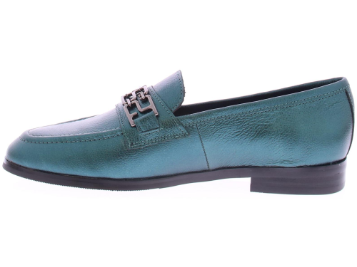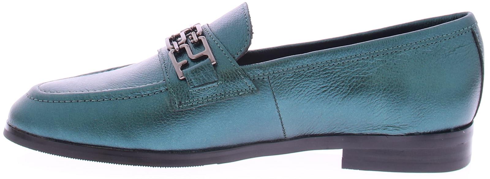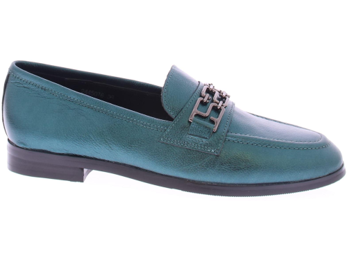 Zeegroen leren dames instapper van Di Lauro. Deze instapper met een ovale leest heeft op de wreef een fijne metaal kleurige bit. Dit model is leergevoerd, met een vast voetbed, en heeft een kunststof zool en een lage hak van 2 centimeter. Met deze mooie loafer geef je ieder outfit een chique uitstraling!