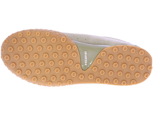 Khaki suède dames sneakers van Hoff, model Bridge FL sage. Deze sneaker is uitgevoerd in suède met subtiele leren details en heeft een sportieve zool met gripvast profiel. Het zachte, uitneembare voetbed biedt optimaal comfort bij dagelijks gebruik. Een veelzijdig model dat moeiteloos combineerbaar is met elke garderobe. Ontdek ook de andere dames sneakers van Hoff bij Klijsen.