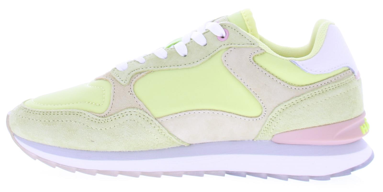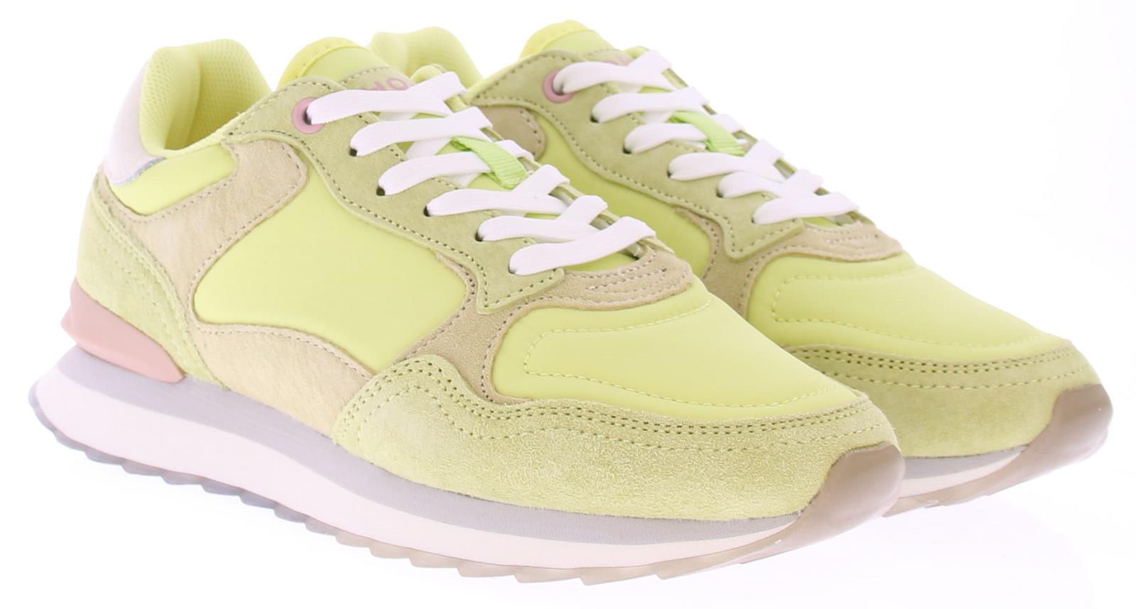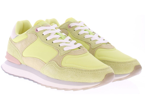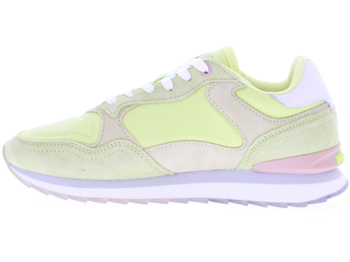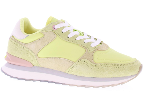Multikleurig stof en suede dames sneaker van Hoff. Deze lage sneaker "Clearwater" woman is gemaakt van diverse materialen en kleuren. Zo heeft de zijkant en bovenkant een paneel van limoengeel textiel, op de neus en hielstuk geel suede, en de hielkussen is van wit leer. De voering is van zacht suedelook en de sneaker heeft een uitneembaar voetbed met memoryfoam.