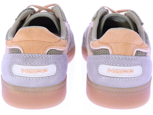 Khaki met beige en oranje suède dames sneakers van Hoff. Deze frisse combinatie van khaki, beige, oranje en subtiel rose accenten geeft de sneaker een moderne en zomerse uitstraling. Het model is uitgevoerd in een mix van suède en ademend mesh, met een zachte uitneembare binnenzool en een transparante rubberzool. Leuk bij een wide-leg jeans of een casual zomerjurk. Ontdek ook de andere dames sneakers van Hoff bij Klijsen.