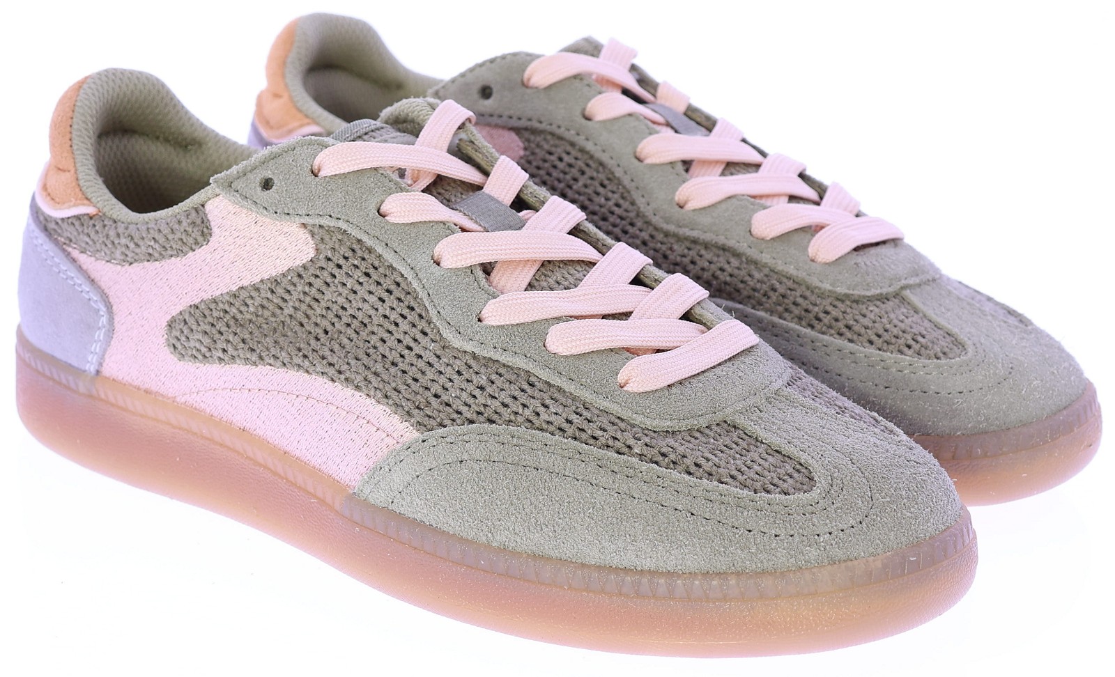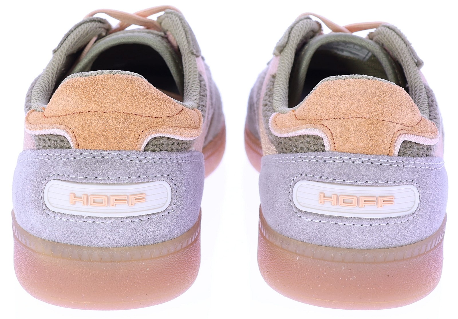 Khaki met beige en oranje suède dames sneakers van Hoff. Deze frisse combinatie van khaki, beige, oranje en subtiel rose accenten geeft de sneaker een moderne en zomerse uitstraling. Het model is uitgevoerd in een mix van suède en ademend mesh, met een zachte uitneembare binnenzool en een transparante rubberzool. Leuk bij een wide-leg jeans of een casual zomerjurk. Ontdek ook de andere dames sneakers van Hoff bij Klijsen.