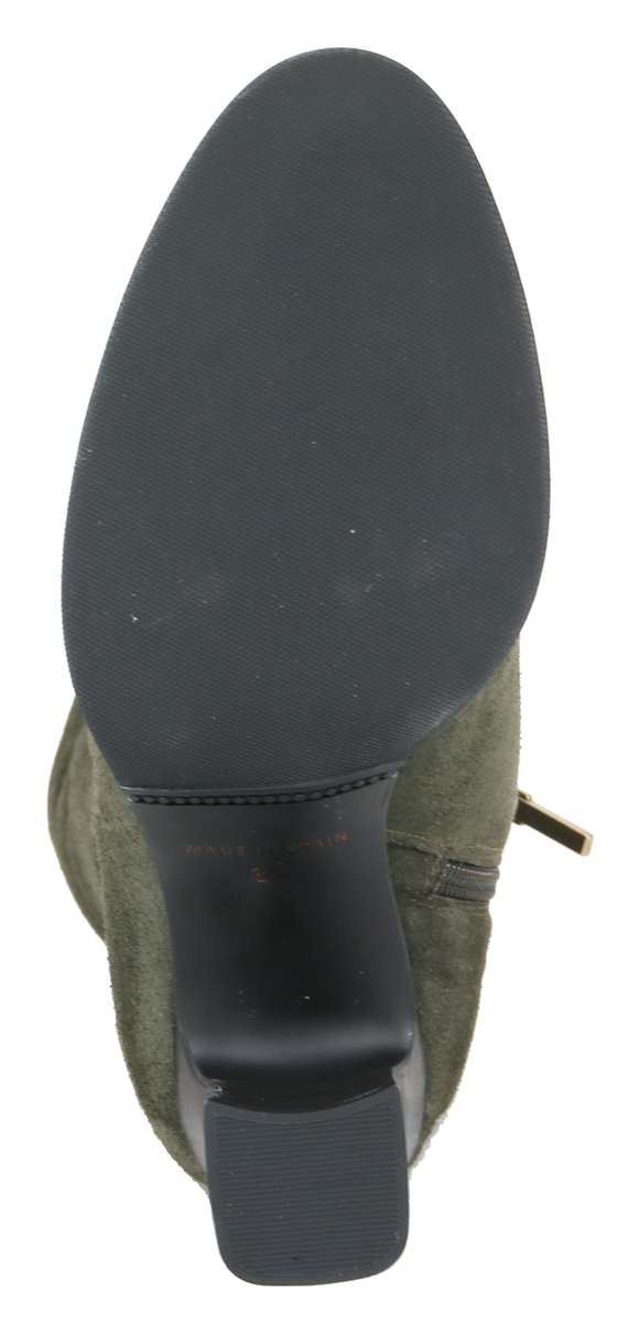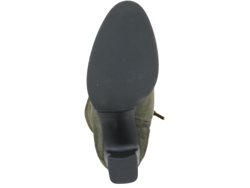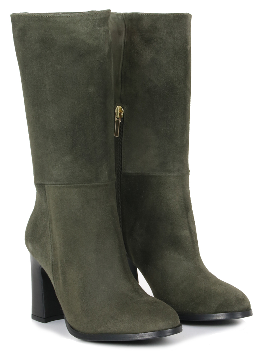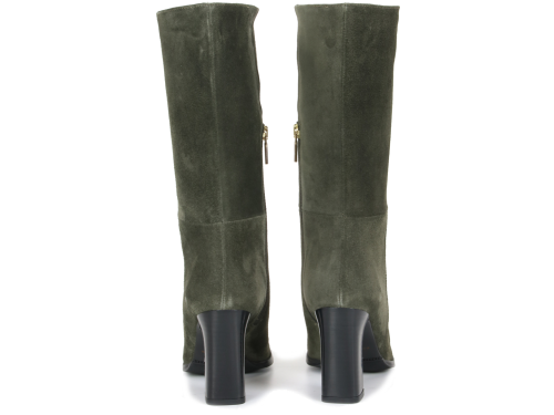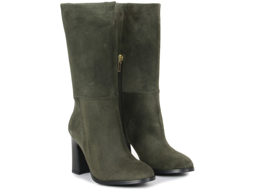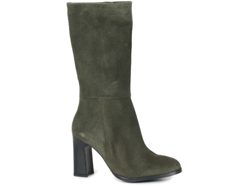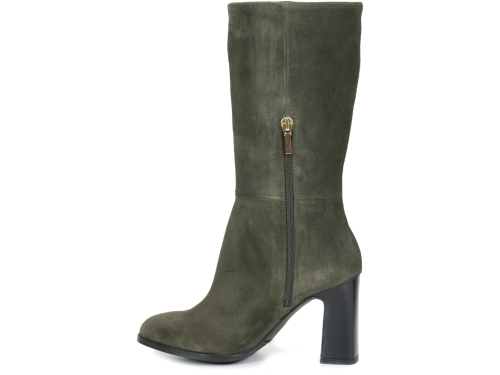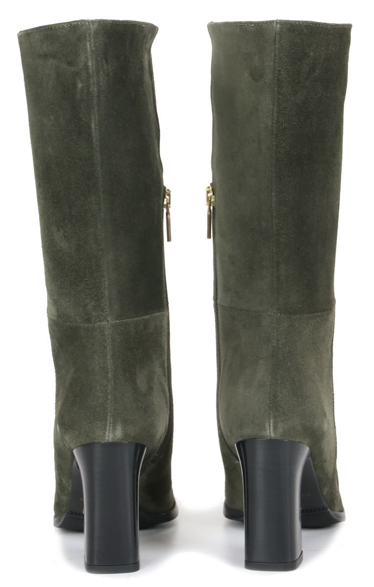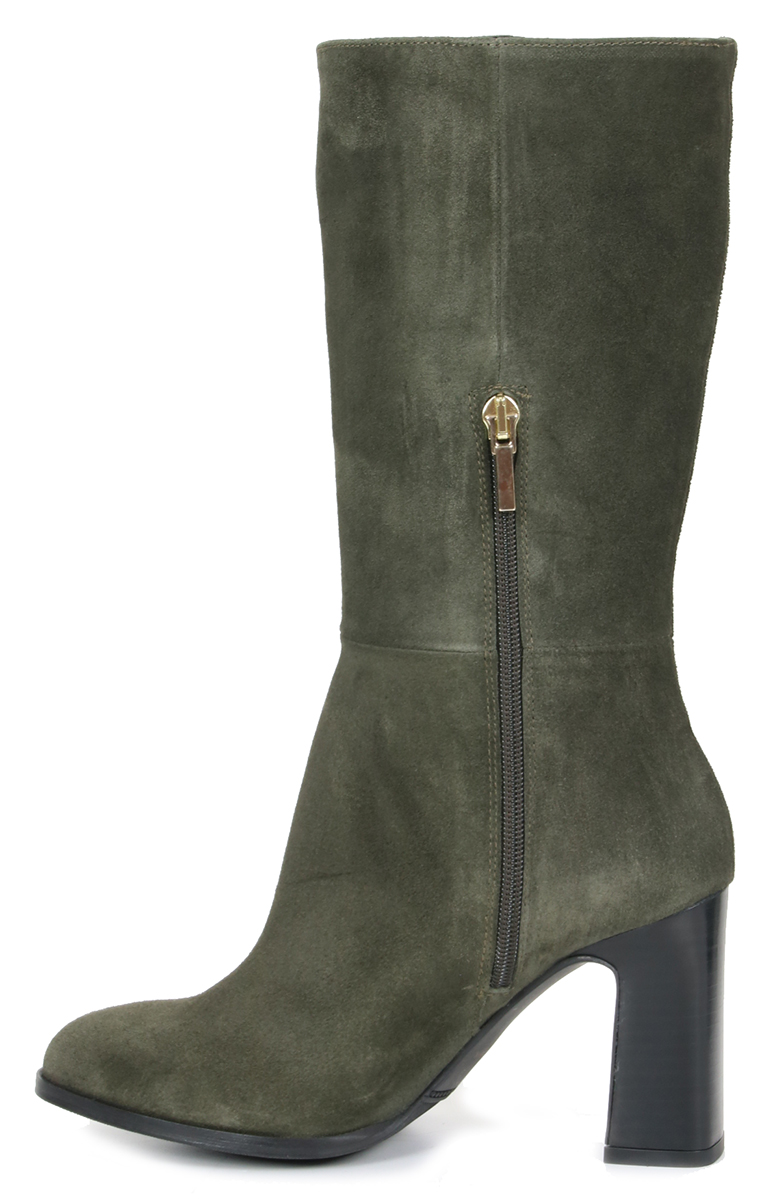 Khaki suede dames laars van Vivian Ray. Deze mooie simpele driekwart laars heeft een elegante hak van 8cm.
