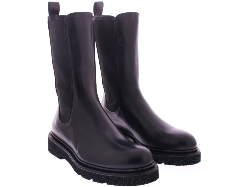 De Keith van Guglielmo Rotta is een stijlvolle zwarte leren Chelseaboot met een stoere maar vrouwelijke uitstraling. Deze laars is uitgevoerd op een verfijnde leest en voorzien van elastiek aan beide zijden van de schacht, zoals kenmerkend is voor de klassieke Chelseaboot. De sportieve rubberen zool is gemaakt van een speciaal lightweight materiaal, waardoor de schoen licht aanvoelt en comfortabel loopt. Het luxe, glanzende leer geeft de boot een elegante uitstraling die moeiteloos past bij zowel een casual als een geklede look. Een moderne klassieker die stijl, comfort en kwaliteit perfect combineert – onmisbaar in elke damesgarderobe.