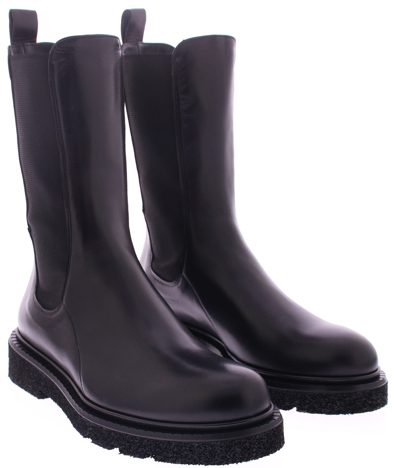 De Keith van Guglielmo Rotta is een stijlvolle zwarte leren Chelseaboot met een stoere maar vrouwelijke uitstraling. Deze laars is uitgevoerd op een verfijnde leest en voorzien van elastiek aan beide zijden van de schacht, zoals kenmerkend is voor de klassieke Chelseaboot. De sportieve rubberen zool is gemaakt van een speciaal lightweight materiaal, waardoor de schoen licht aanvoelt en comfortabel loopt. Het luxe, glanzende leer geeft de boot een elegante uitstraling die moeiteloos past bij zowel een casual als een geklede look. Een moderne klassieker die stijl, comfort en kwaliteit perfect combineert – onmisbaar in elke damesgarderobe.