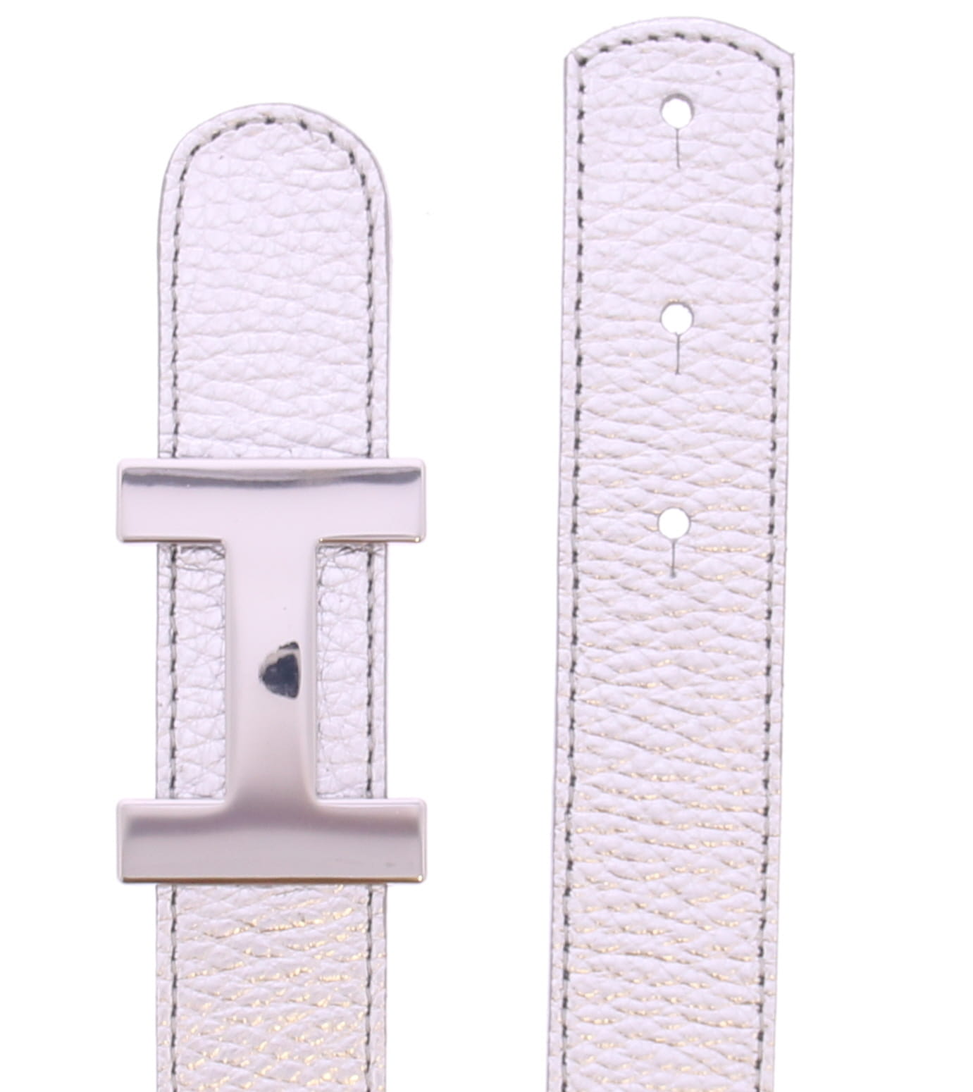 Zilverkleurige damesriem van het merk H.A.N. Deze 3 cm brede riem is gemaakt van leer, een echte eyecatcher voor bij je garderobe. Draag hem om je taille om je look te accentueren of draag hem nonchalant om je heupen voor een trendy touch.