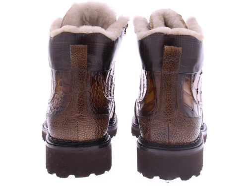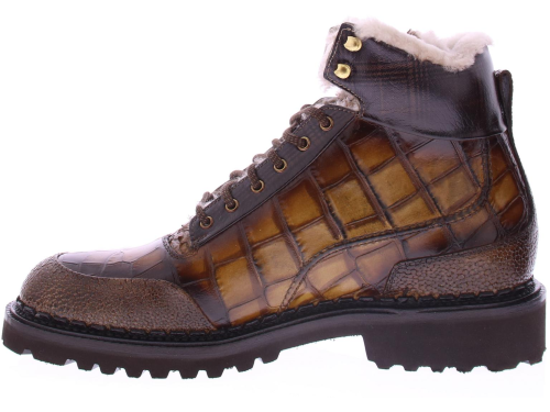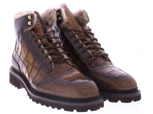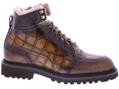 Heren veterboot van Harris uitgevoerd in krokodillen print leer met roggen print op de neus en hiel. De boot heeft een voering van wol en is gemaakt op een rubberen zool.