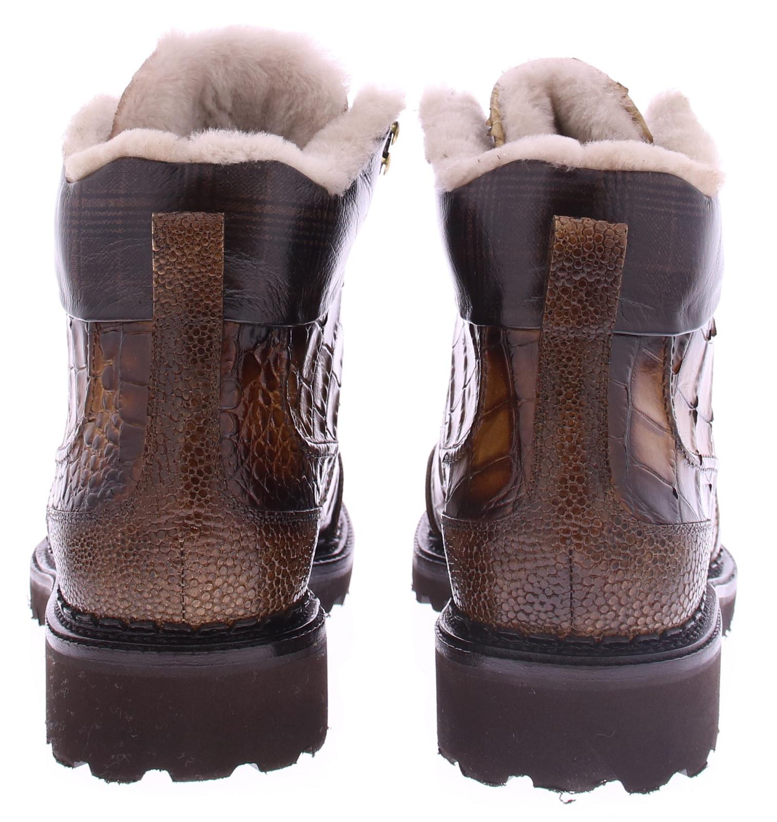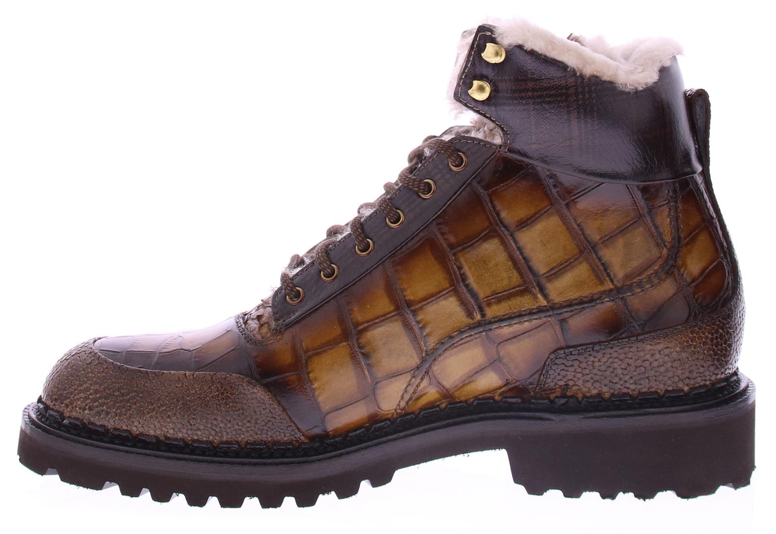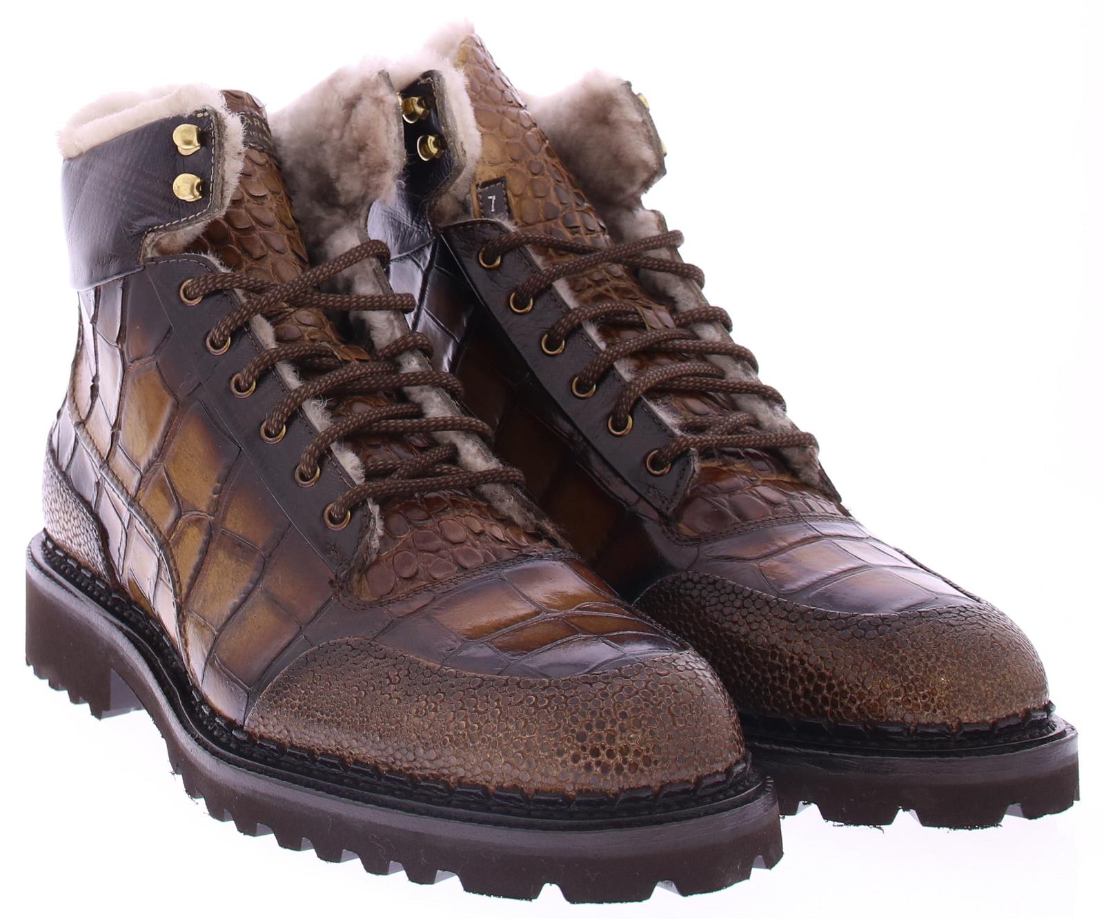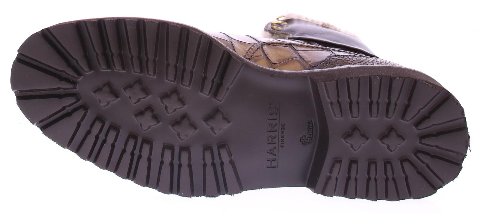 Heren veterboot van Harris uitgevoerd in krokodillen print leer met roggen print op de neus en hiel. De boot heeft een voering van wol en is gemaakt op een rubberen zool.
