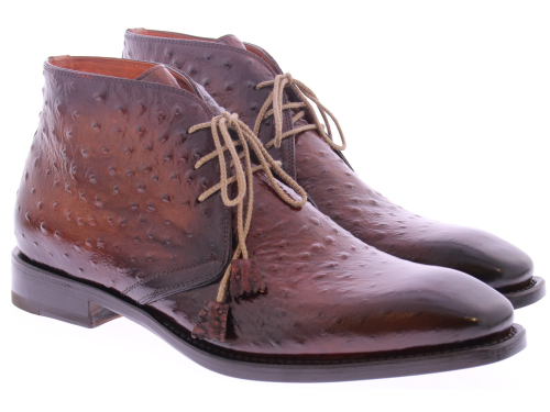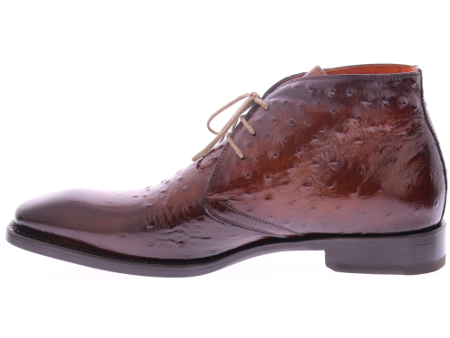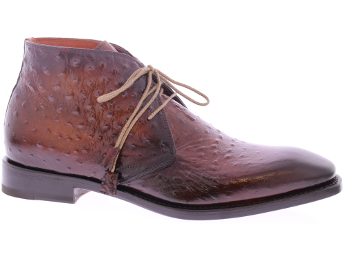 Harris Roodbruine Enkelboot – Kalfsleer met Struisvogelprint Til je stijl naar een hoger niveau met deze exclusieve Harris enkelboot, uitgevoerd in verfijnd roodbruin kalfsleer met een subtiele struisvogelprint. Een schoen met karakter, perfect voor de moderne man die houdt van luxe en onderscheidend design.