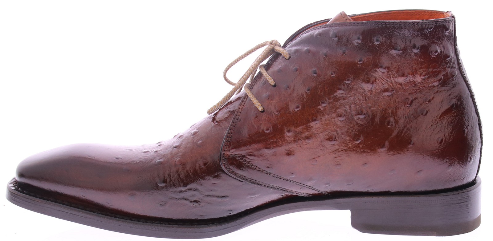 Harris Roodbruine Enkelboot – Kalfsleer met Struisvogelprint Til je stijl naar een hoger niveau met deze exclusieve Harris enkelboot, uitgevoerd in verfijnd roodbruin kalfsleer met een subtiele struisvogelprint. Een schoen met karakter, perfect voor de moderne man die houdt van luxe en onderscheidend design.