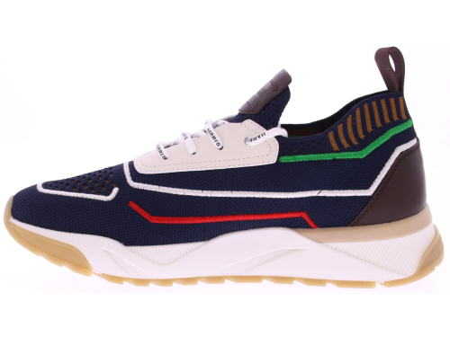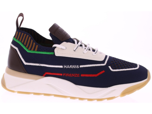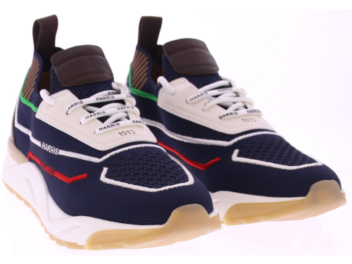 De Harris Slip-On sneaker A26-GD10-057C combineert design met Italiaans vakmanschap. Gemaakt van ademend knit-materiaal met leren details in een stijlvolle blauwe kleur met witte en rode accenten. De unieke logoveters, het geborduurde zijlogo en de lichtgewicht zool zorgen voor een luxe uitstraling en optimaal draagcomfort. Handgemaakt in Italië, perfect voor zowel casual als smart-casual outfits.