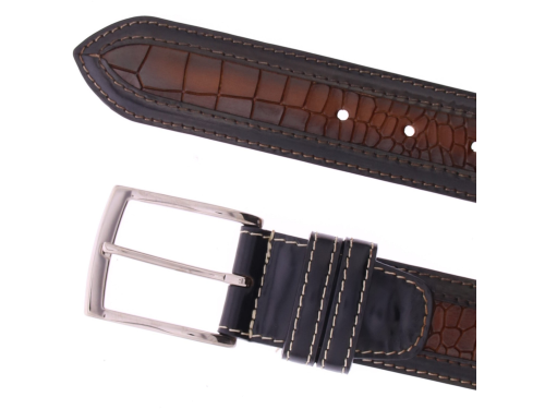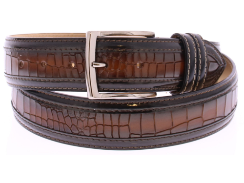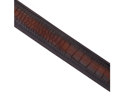 Bruin leren heren riem van Harris.Gemaakt van hoogwaardig kalfsleer met een luxueuze crocoprint, voorzien van een unieke met de hand aangebrachte finish.De riem is in te korten aan de gespkant. Deze riem is passend bij de schoen uit onze collectie met artikelnummer 44150.