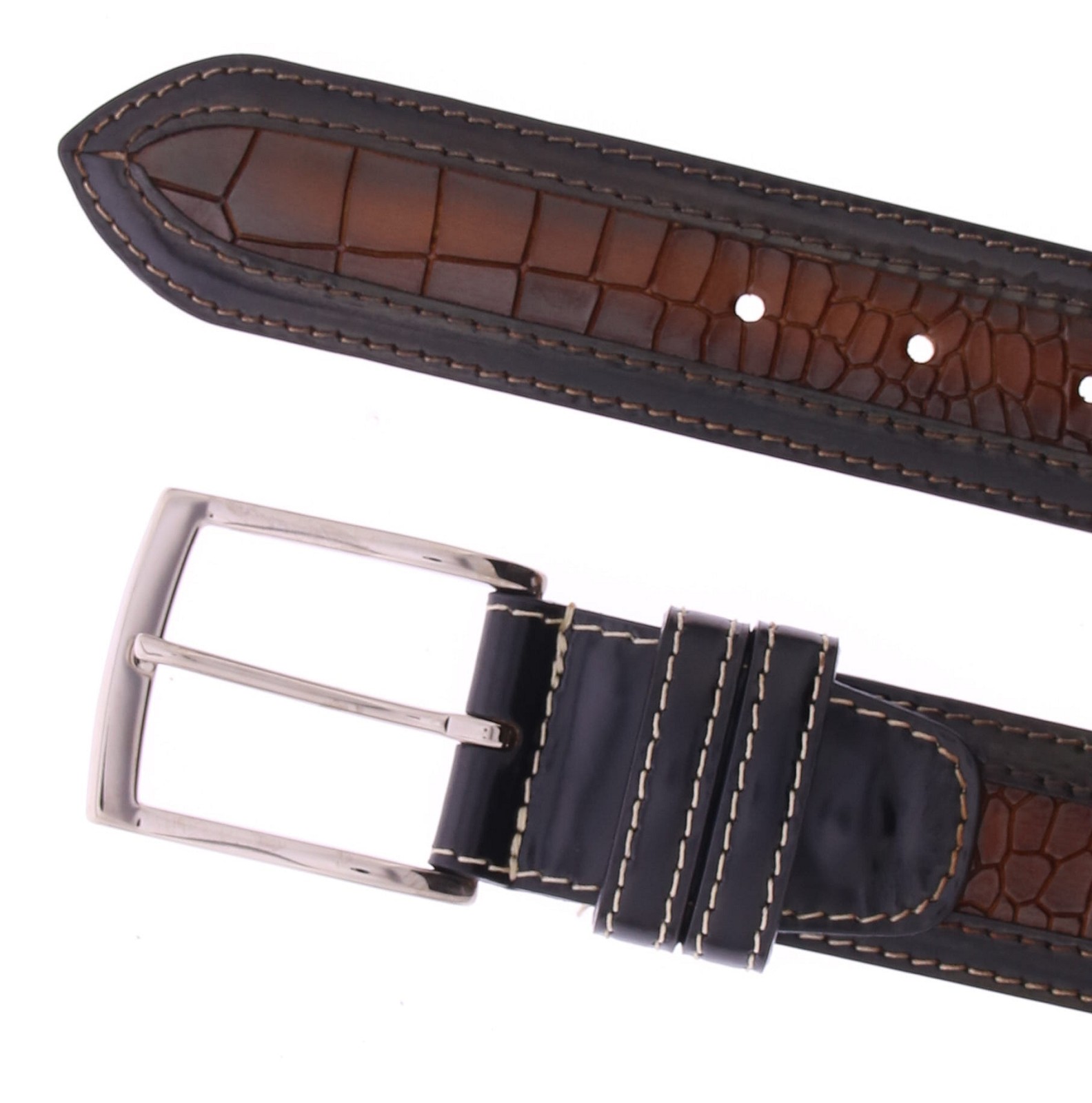 Bruin leren heren riem van Harris.Gemaakt van hoogwaardig kalfsleer met een luxueuze crocoprint, voorzien van een unieke met de hand aangebrachte finish.De riem is in te korten aan de gespkant. Deze riem is passend bij de schoen uit onze collectie met artikelnummer 44150.